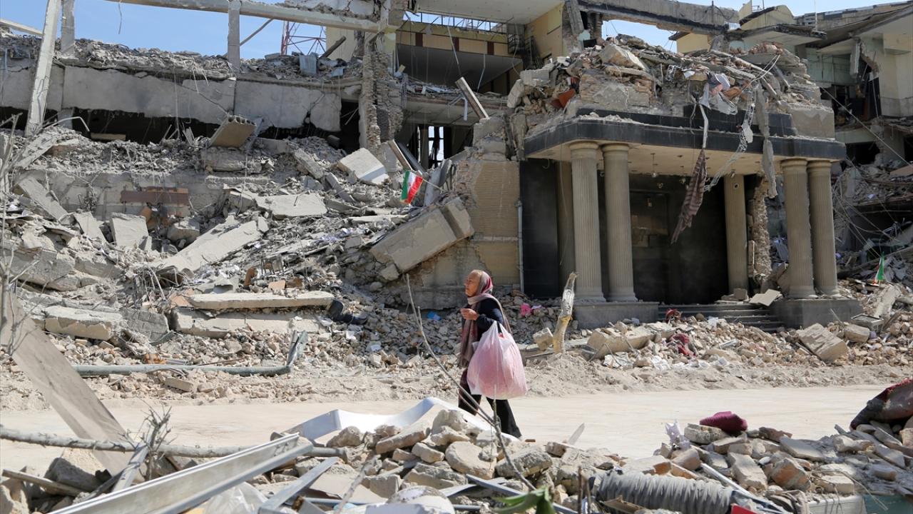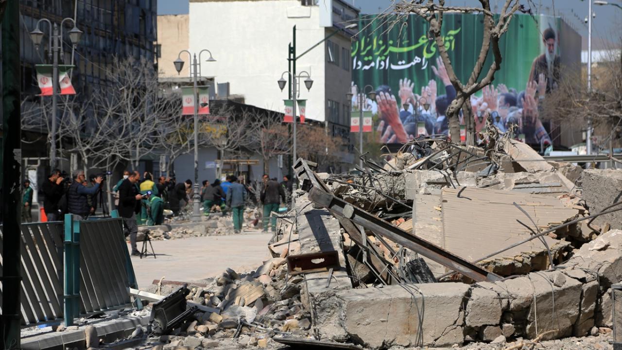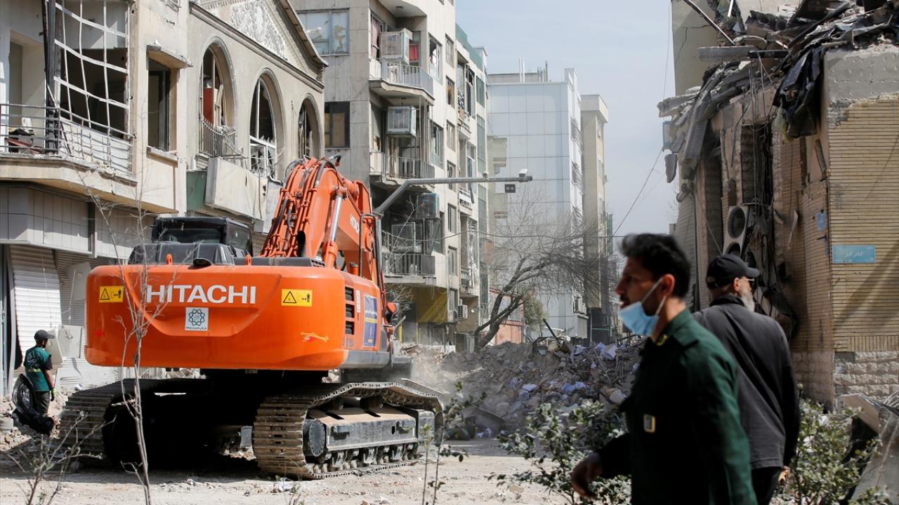 İranlıların bulaşma noktalarından olan Meydan`da yer alan polis merkezine ait bina da yerle bir olurken, çevredeki birçok ev ve ofiste de hasar oluştu.