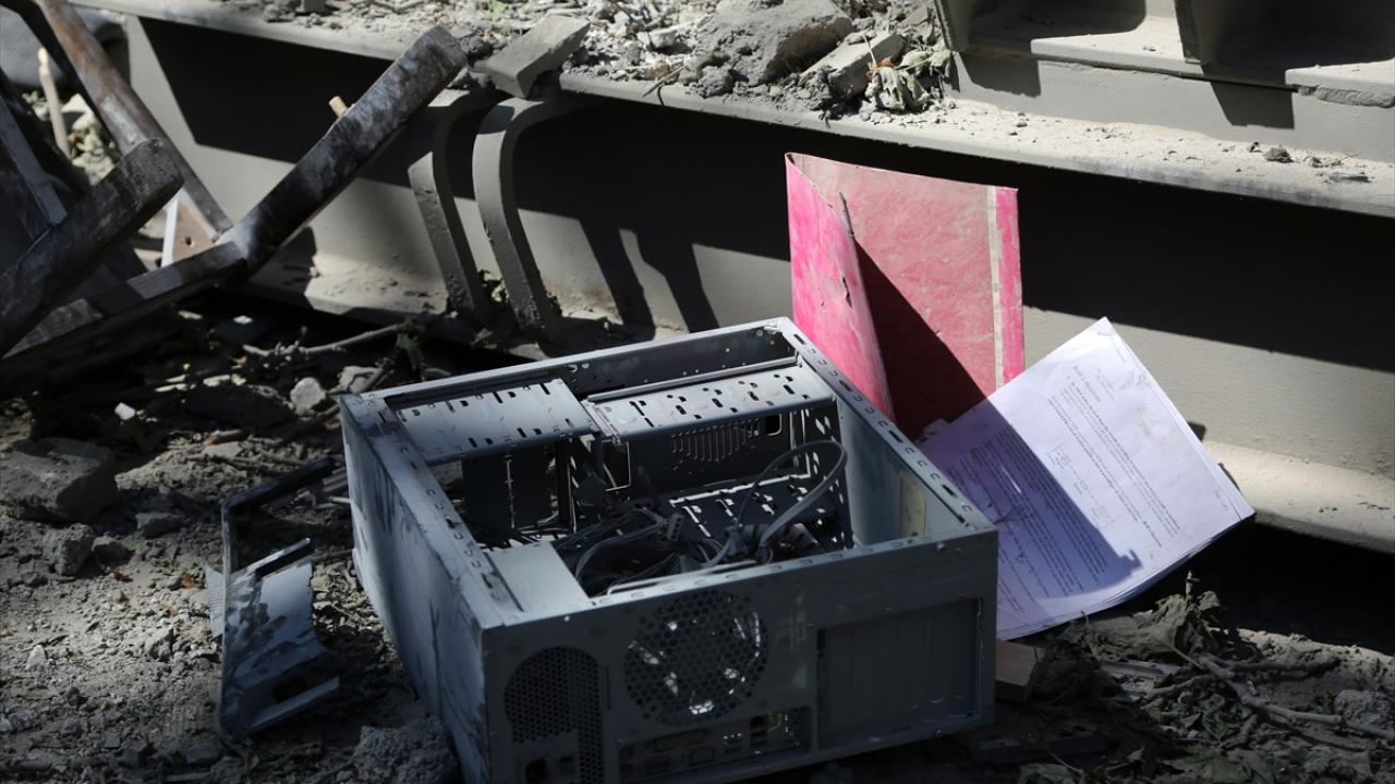 Yıkılan binaların enkazında bilgisayarlar, eğitim materyalleri ve çeşitli elektronik malzemeler dikkat çekerken, yıkıntıların üzerine Minab saldırısında hayatını kaybeden öğrencilerin fotoğrafları yerleştirildi. Saldırılarda hayatını kaybeden İranlı komutanların fotoğraflarının da enkaz önüne gerilen ipler üzerine asıldığı görüldü.