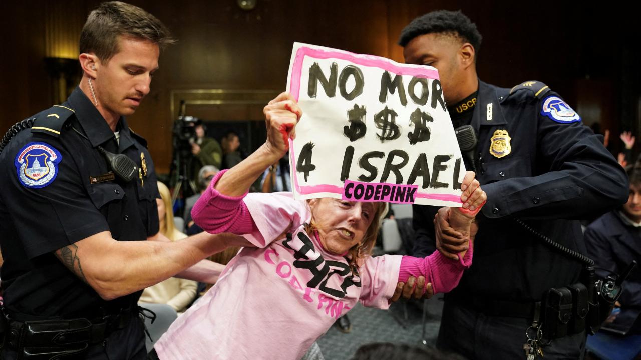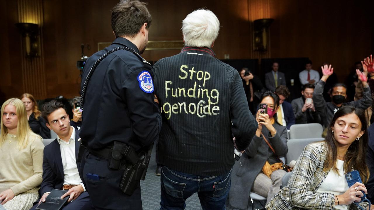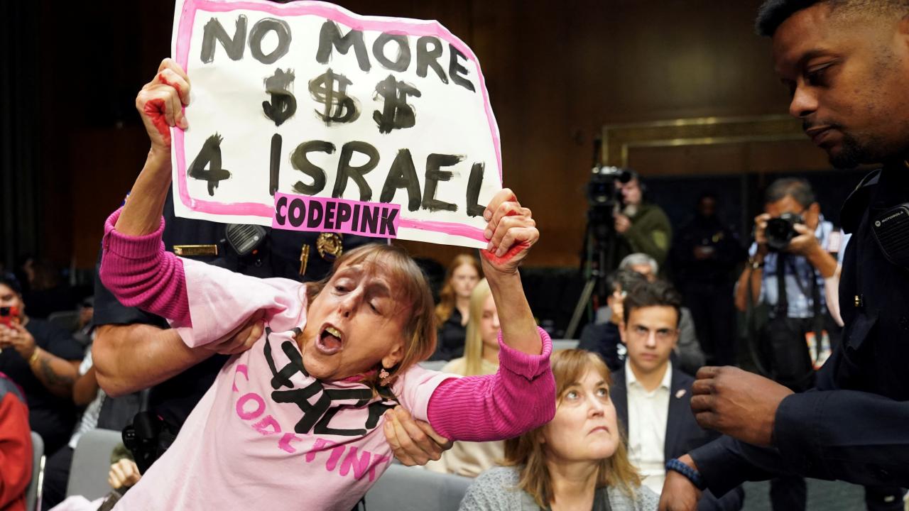 İsrail'in Gazze'deki katliamına tepkiler ABD Kongresi'ne taşındı. Savaş karşıtları, Ukrayna ve İsrail için ek bütçe talebi konusunda Senato'da yapılan oturumu bastı.
