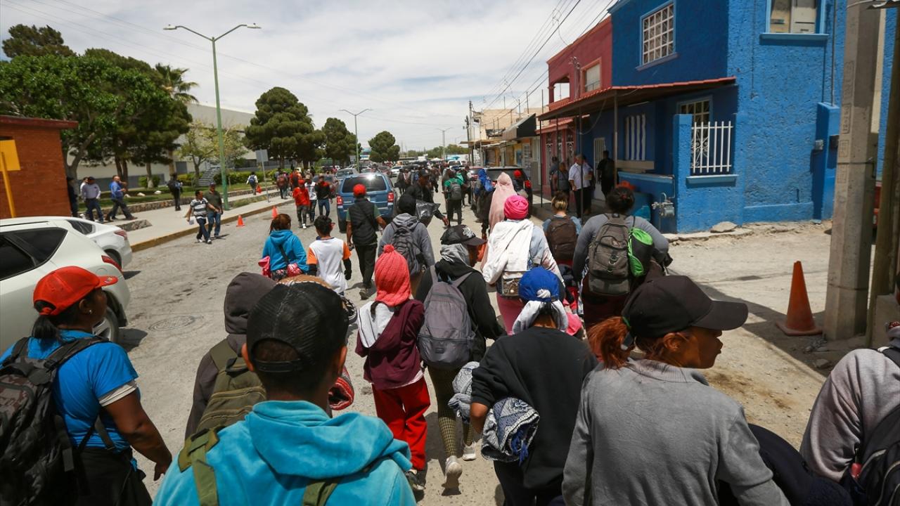 Trenden indikten sonra kafileler halinde Texas sınırına ilerleyen göçmenler ABD’ye giriş yapabilmek için bekleyişlerini sürdürüyor.