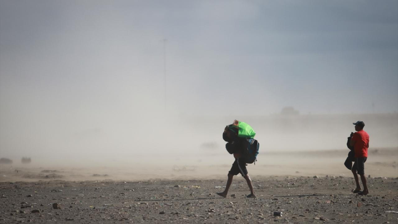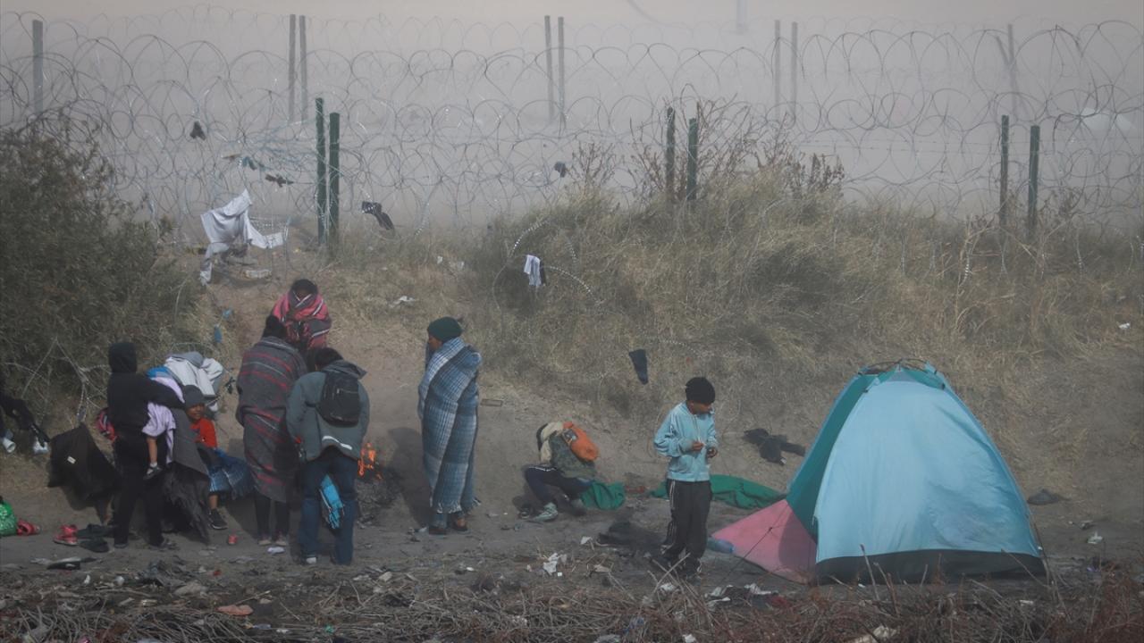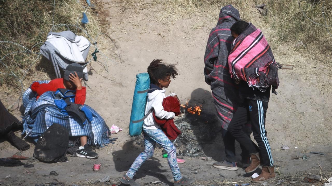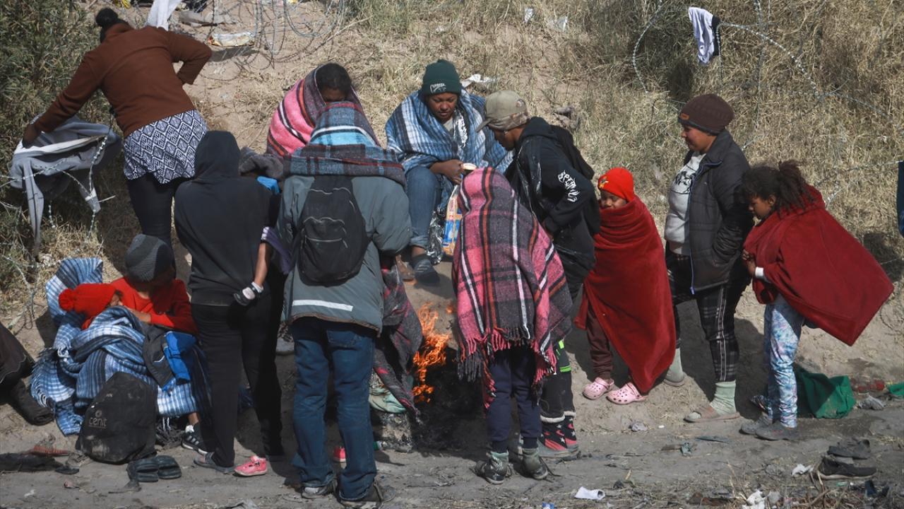 ABD Ulusal Muhafızları tarafı tarafından sınırdan geçişlerine izin verilmeyen ve insani sığınma talebinde bulunmak amacıyla gelen yüzlerce göçmen soğuk havadan kendilerini battaniyelerle koruyarak bekleyişlerini sürdürüyor.