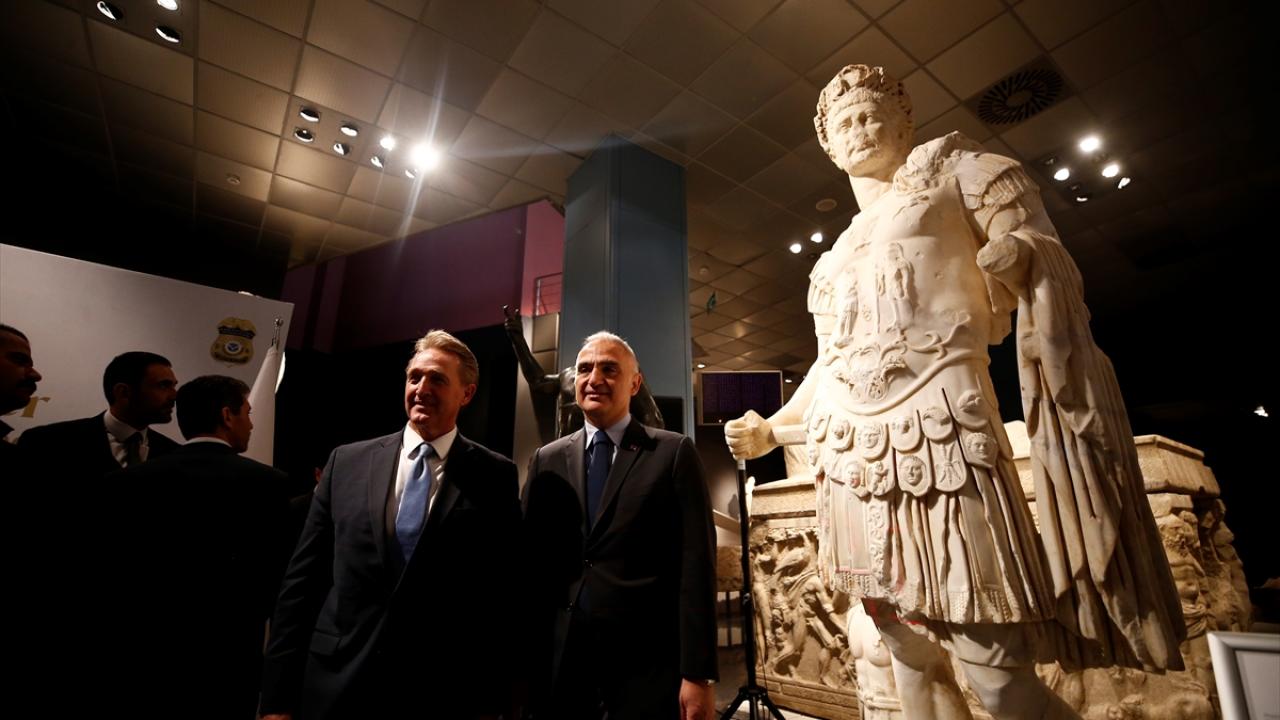 İadesi sağlanan eserler hakkında gerçekleştirilen soruşturma kapsamında kazı kayıtları, kazı envanteri ve belgelemelerin dosya açısından son derece belirleyici olduğuna dikkati çeken Ersoy, "Bir diğer eserimiz ise 1960`lı yıllarda çok yoğun kaçak kazıya maruz kalan Baubon Antik Kenti kökenli Septimius Severus heykelidir. Geçen yıl iadesini sağladığımız ve yine aynı alandan yasa dışı olarak götürülmüş olan Lucius Verus heykelimizde olduğu gibi, eserin kaidesi, kaidesi üzerindeki yazıt ve ayaklarının oturması için hazırlanmış yuvaların ölçüsünün tutarlılığı ve bir kaçak kazıcının günlüğündeki ifadeler öne çıkan kanıtlarımız arasında bulunuyor." diye konuştu.