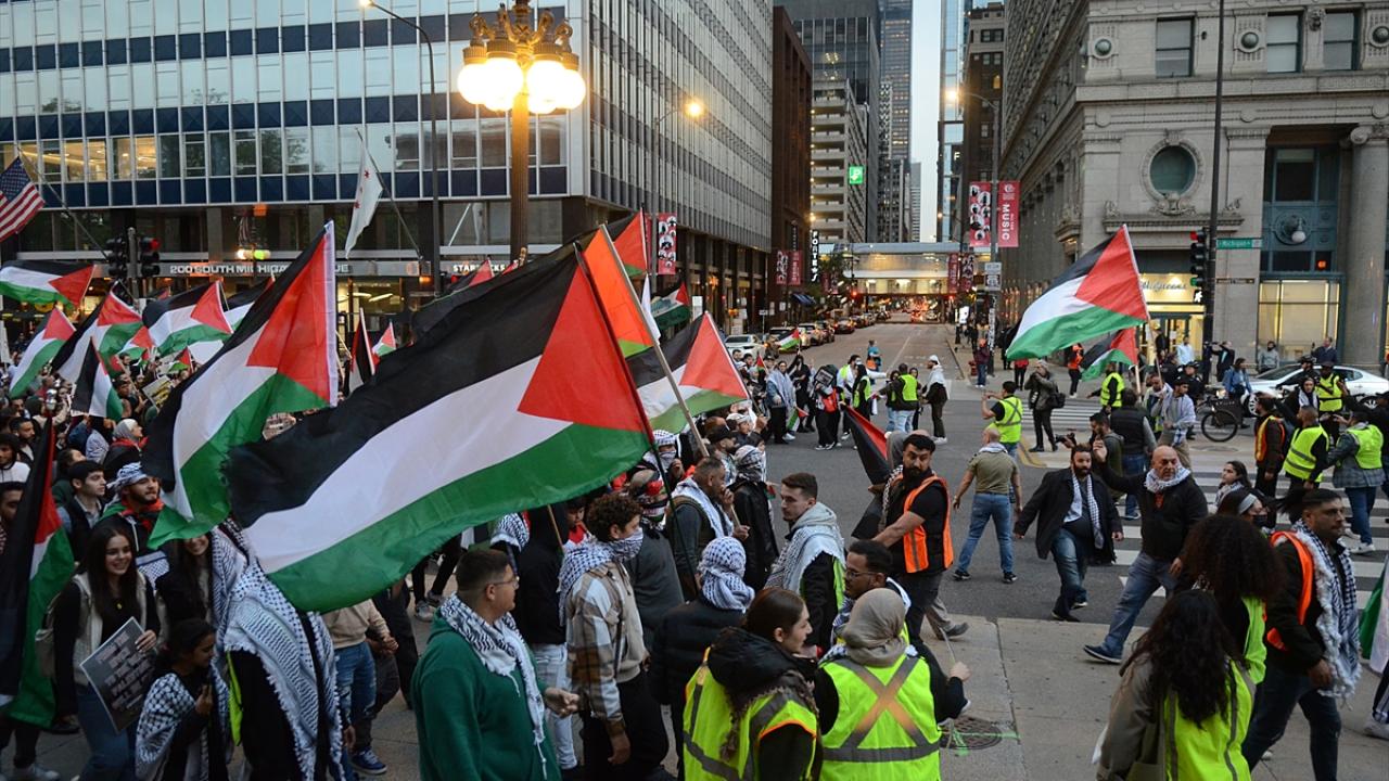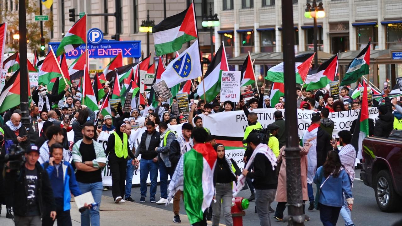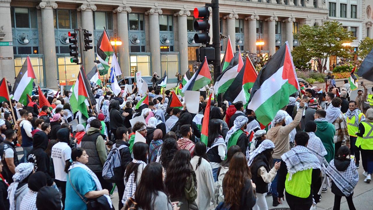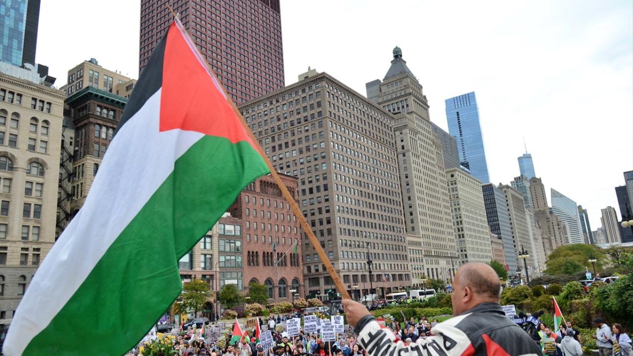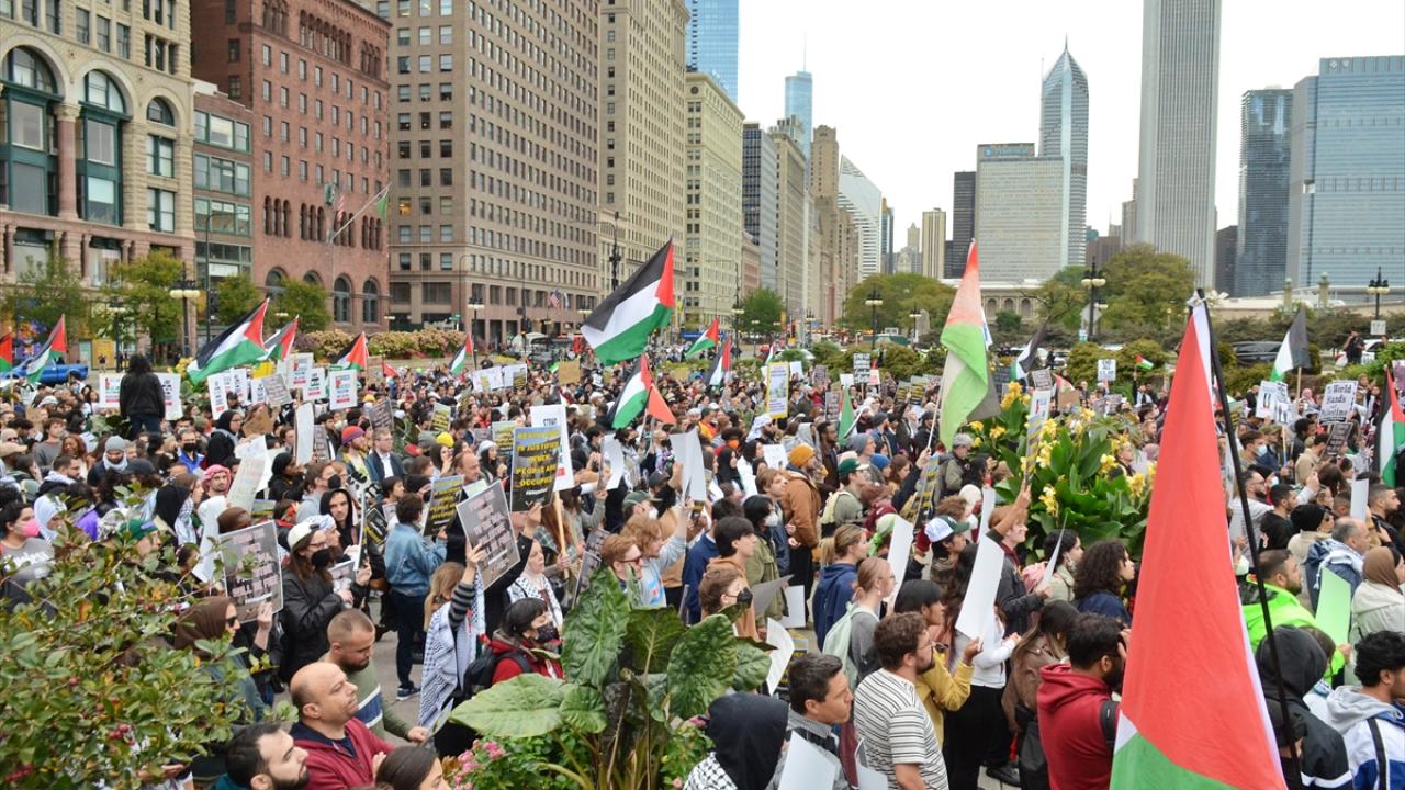 Chicago`da bulunan İsrail Konsolosluğu önünde Filistin`e destek gösterisi düzenlendi.