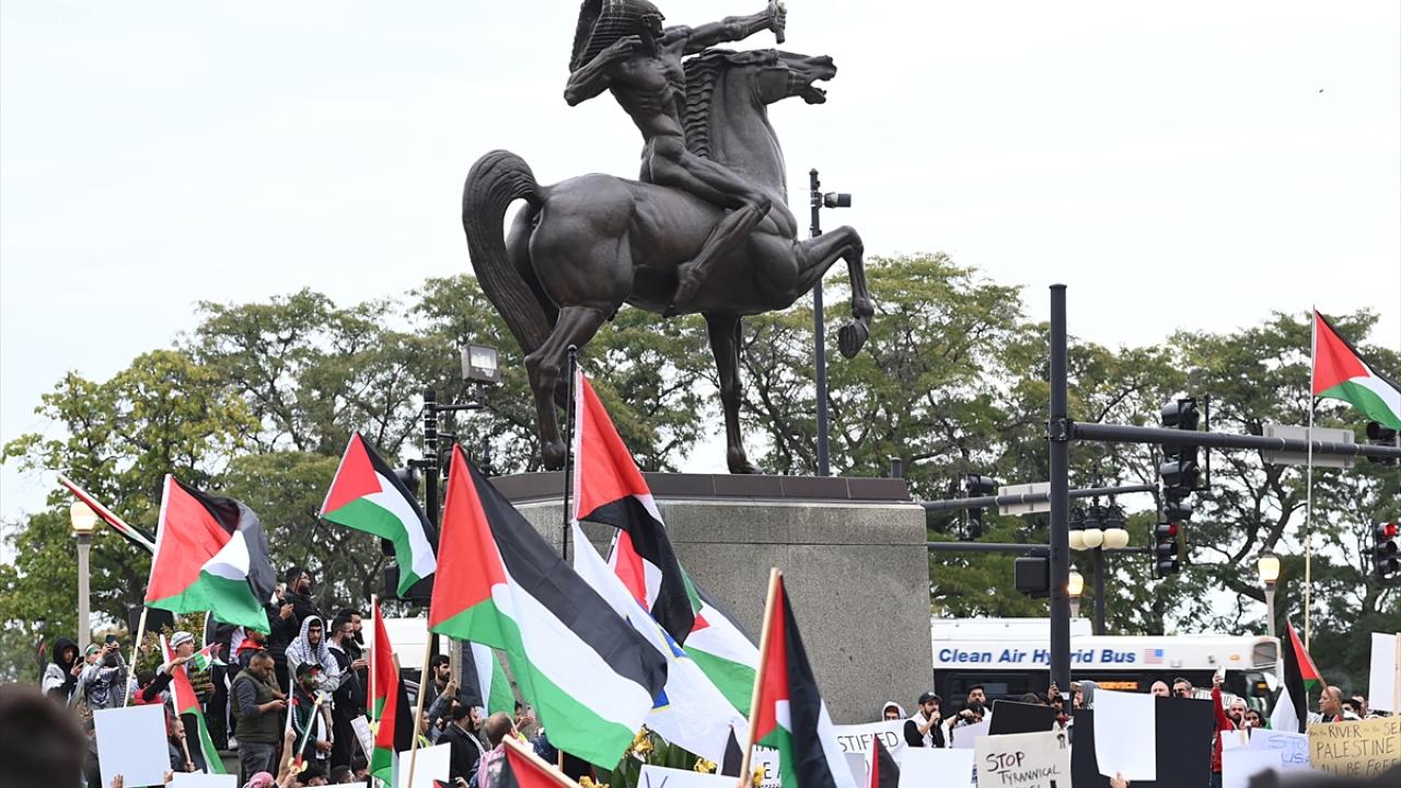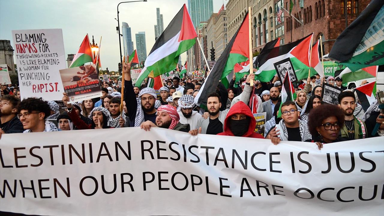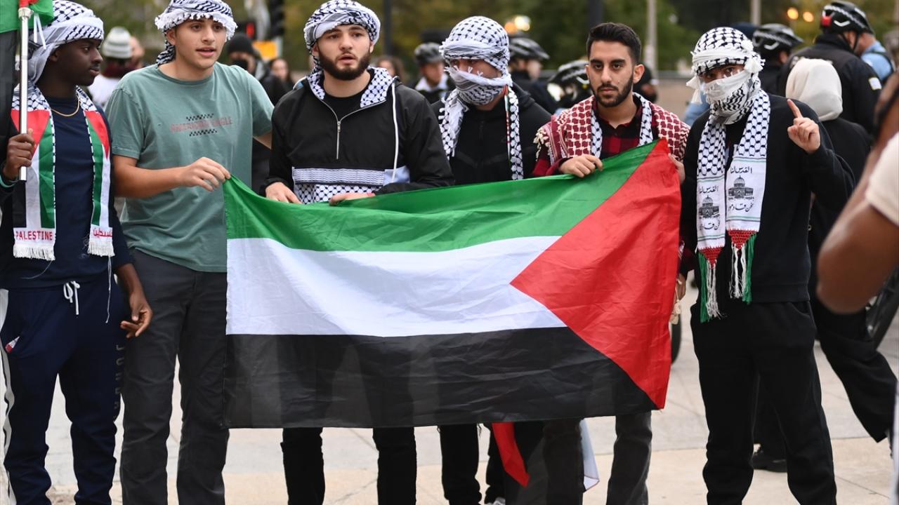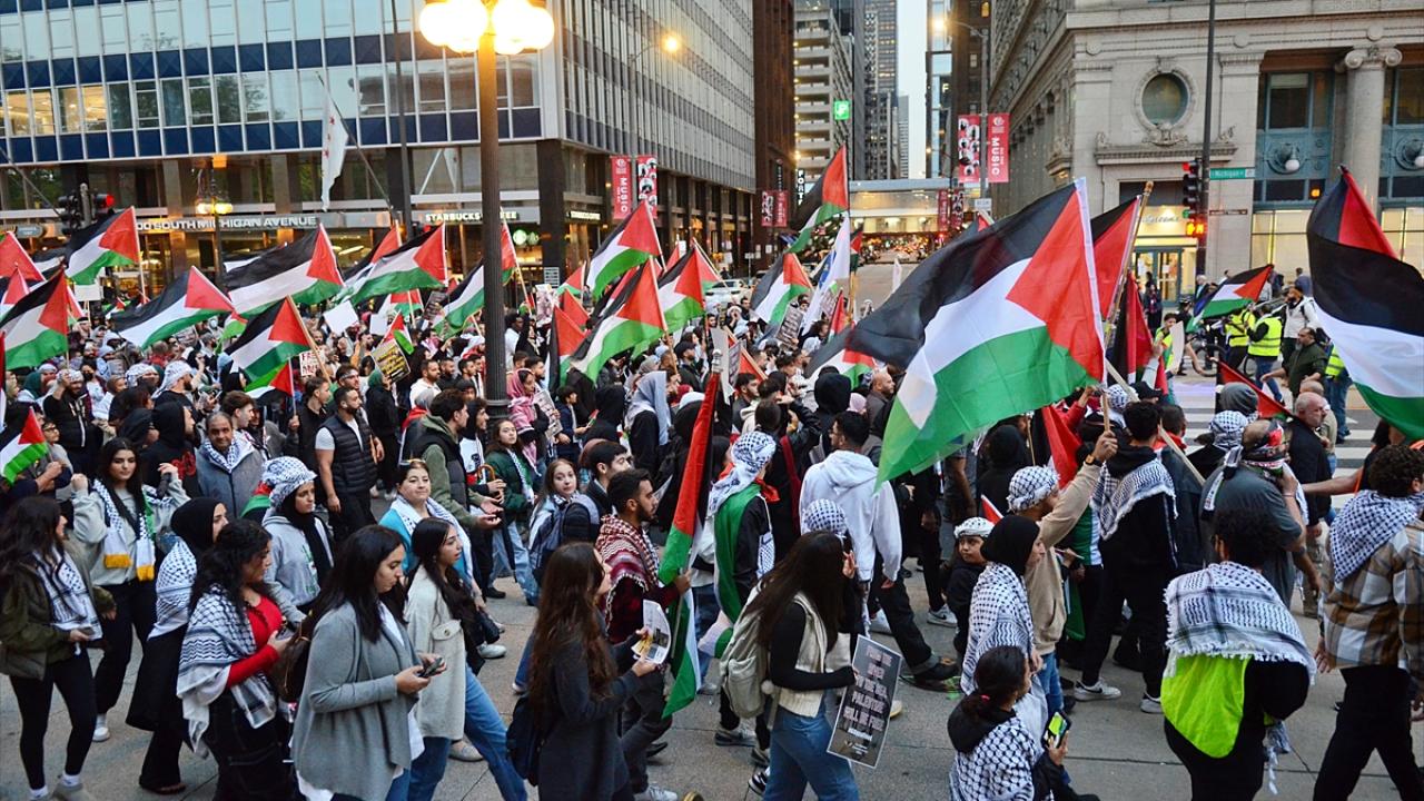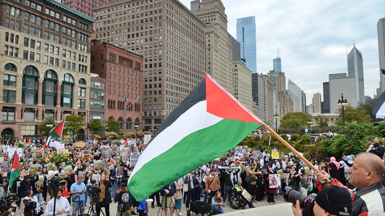Chicago`da bulunan İsrail Konsolosluğu önünde Filistin`e destek gösterisi düzenlendi.