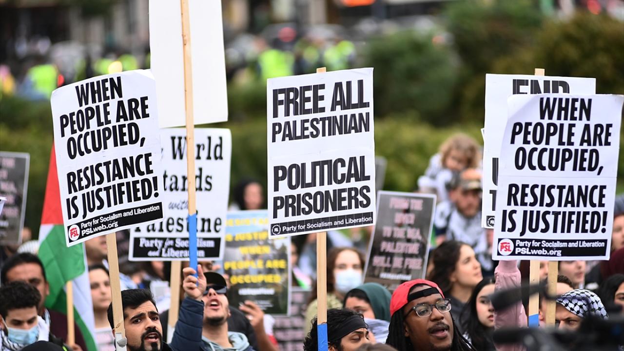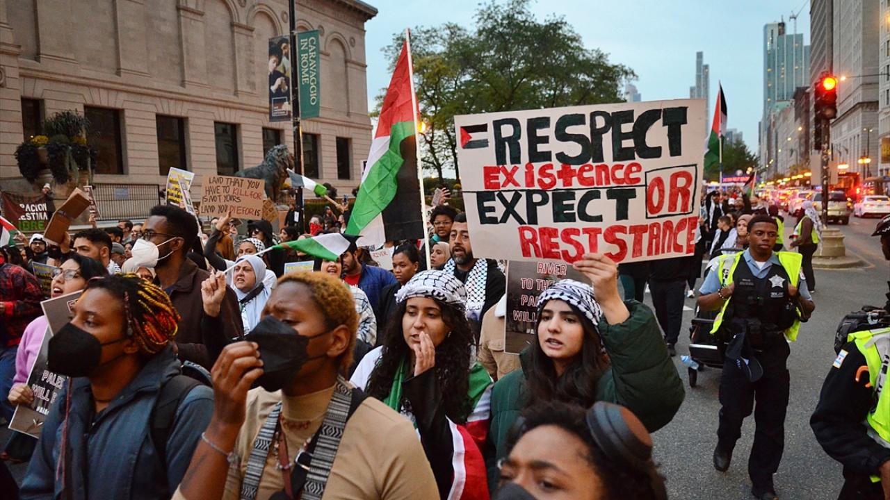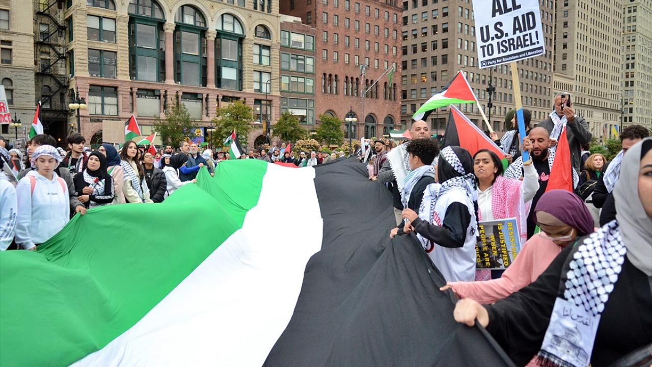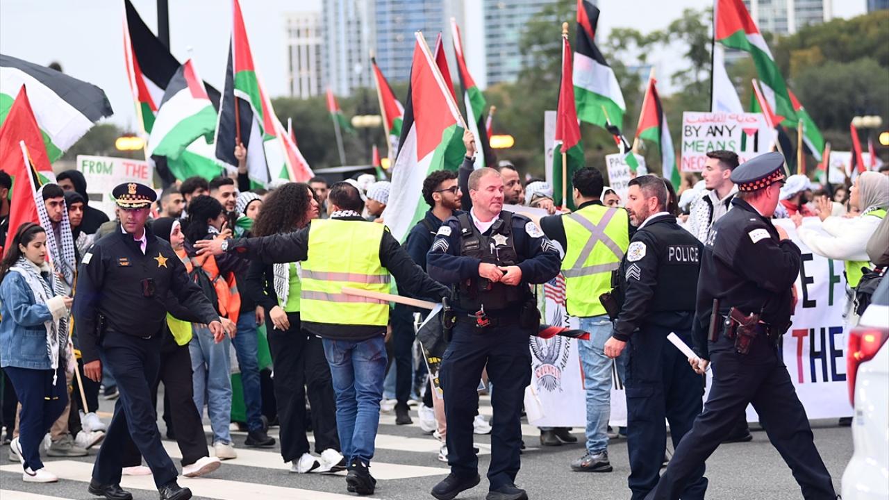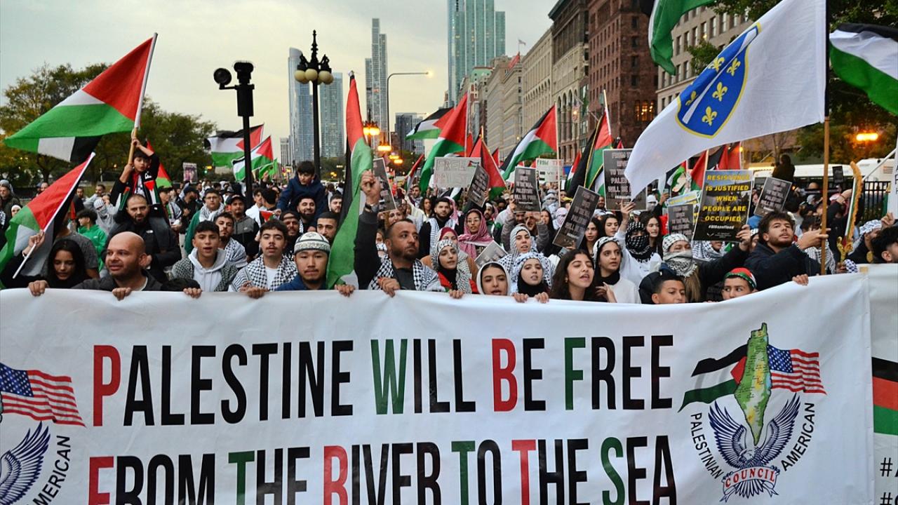 Chicago`da bulunan İsrail Konsolosluğu önünde Filistin`e destek gösterisi düzenlendi.