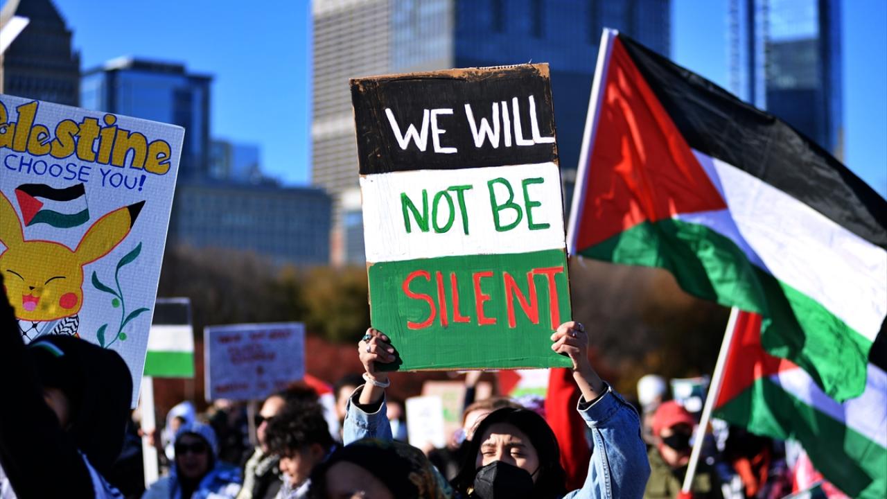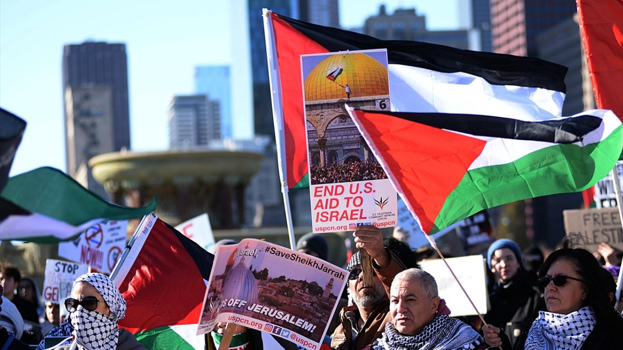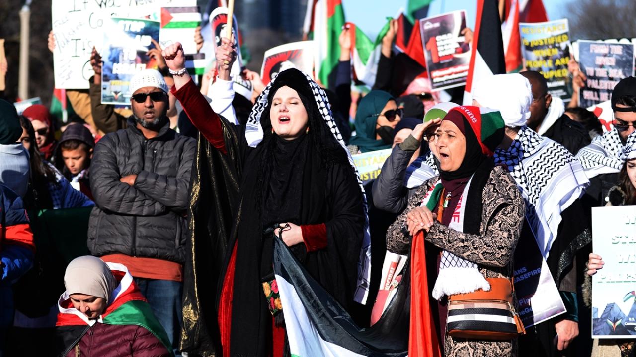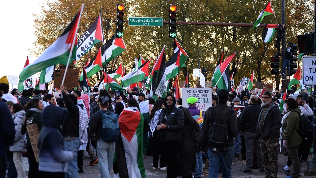 ABD'nin Chicago kentinde bir araya gelen göstericiler Filistin'e destek gösterisi düzenledi.