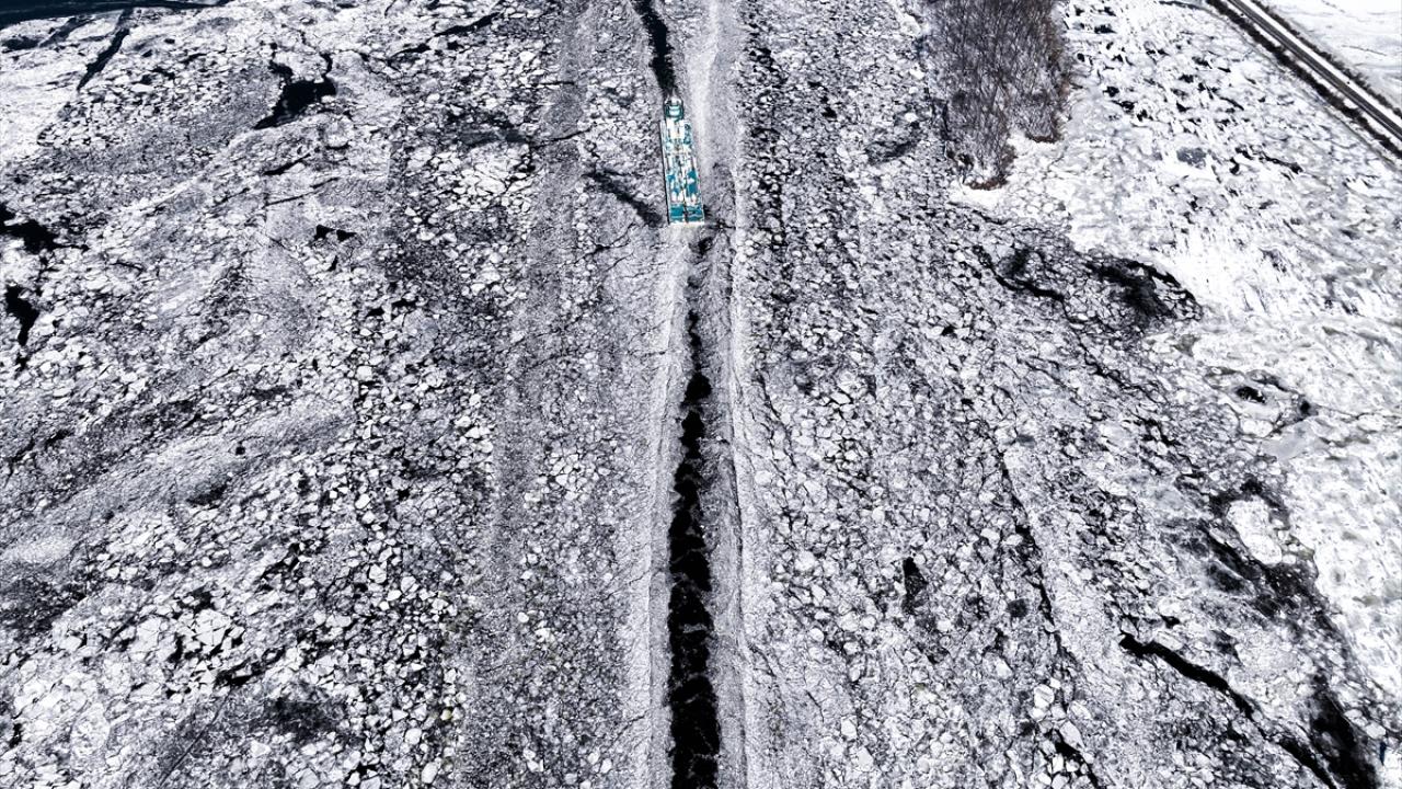 Nehrin yüzeyinde geniş buz tabakaları oluştu.