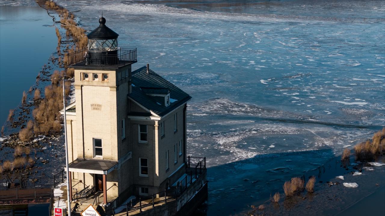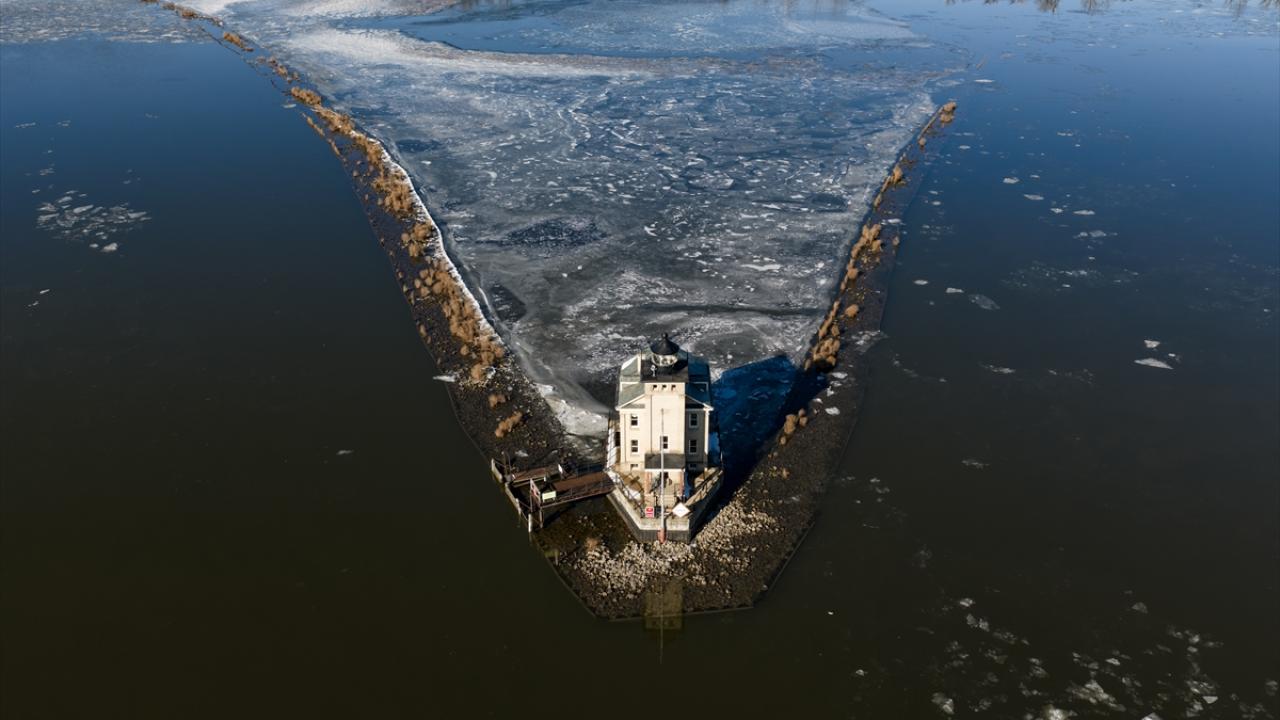 Sıcaklıklarının mevsim normallerinin altına düşmesiyle Rondout Deniz Feneri çevresinde buz tabakası oluştu.