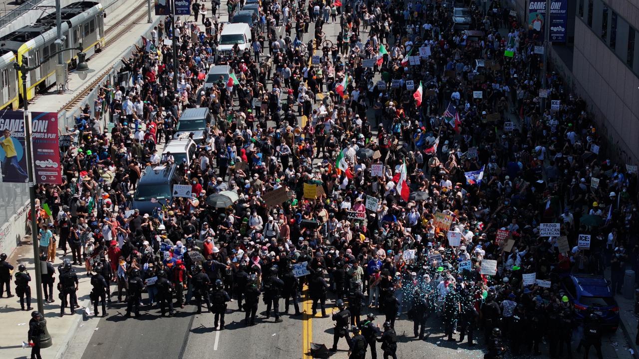 Los Angeles Polis Departmanı (LAPD), izinsiz toplanmaların "yasa dışı" sayılacağını ve bu göstericilerin gözaltına alınacağını duyurdu.