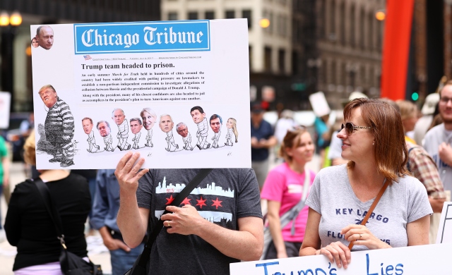 ABD Başkanı Donald Trump, Chicago’da düzenlenen gösteride, vergi beyanı ve Rusya ile olan ilişkileri konusunda gerçekleri söylemediği gerekçesiyle protesto edildi.