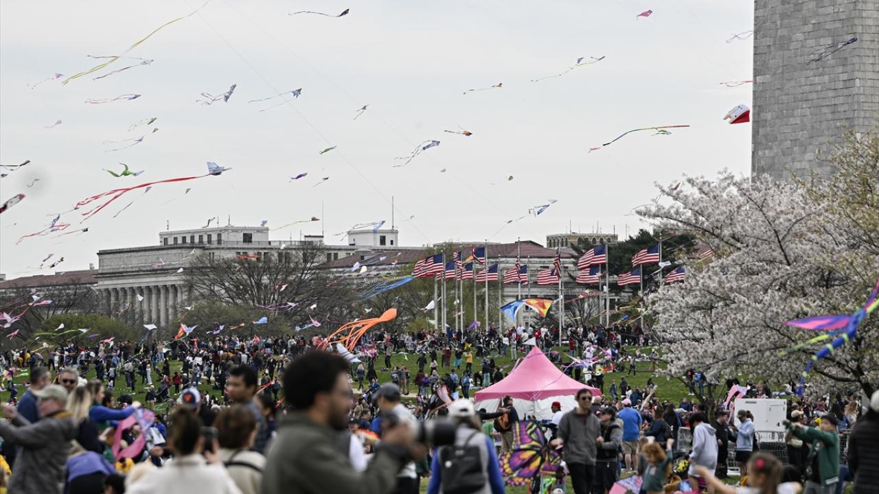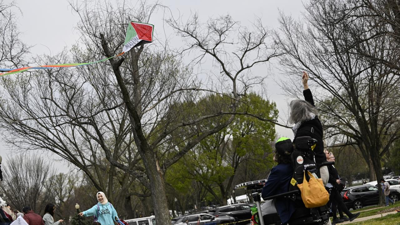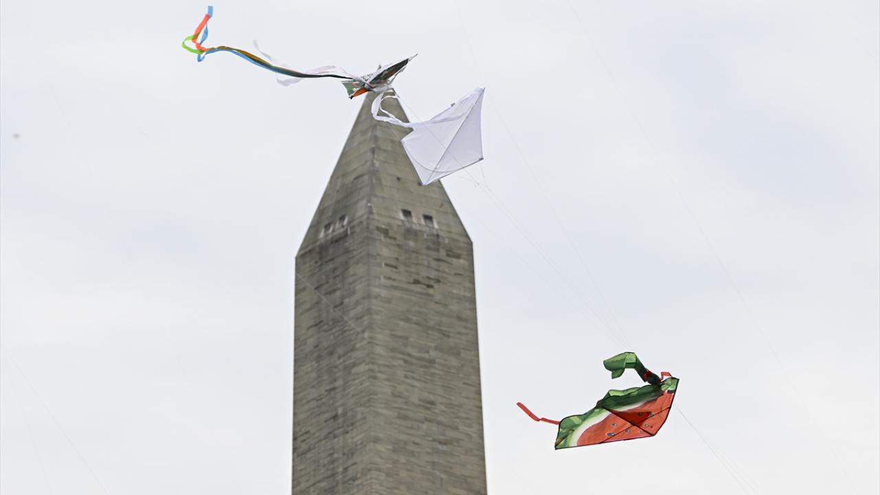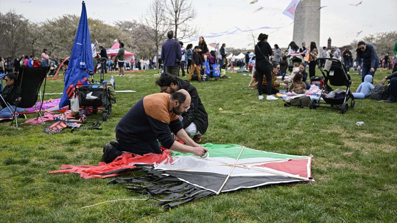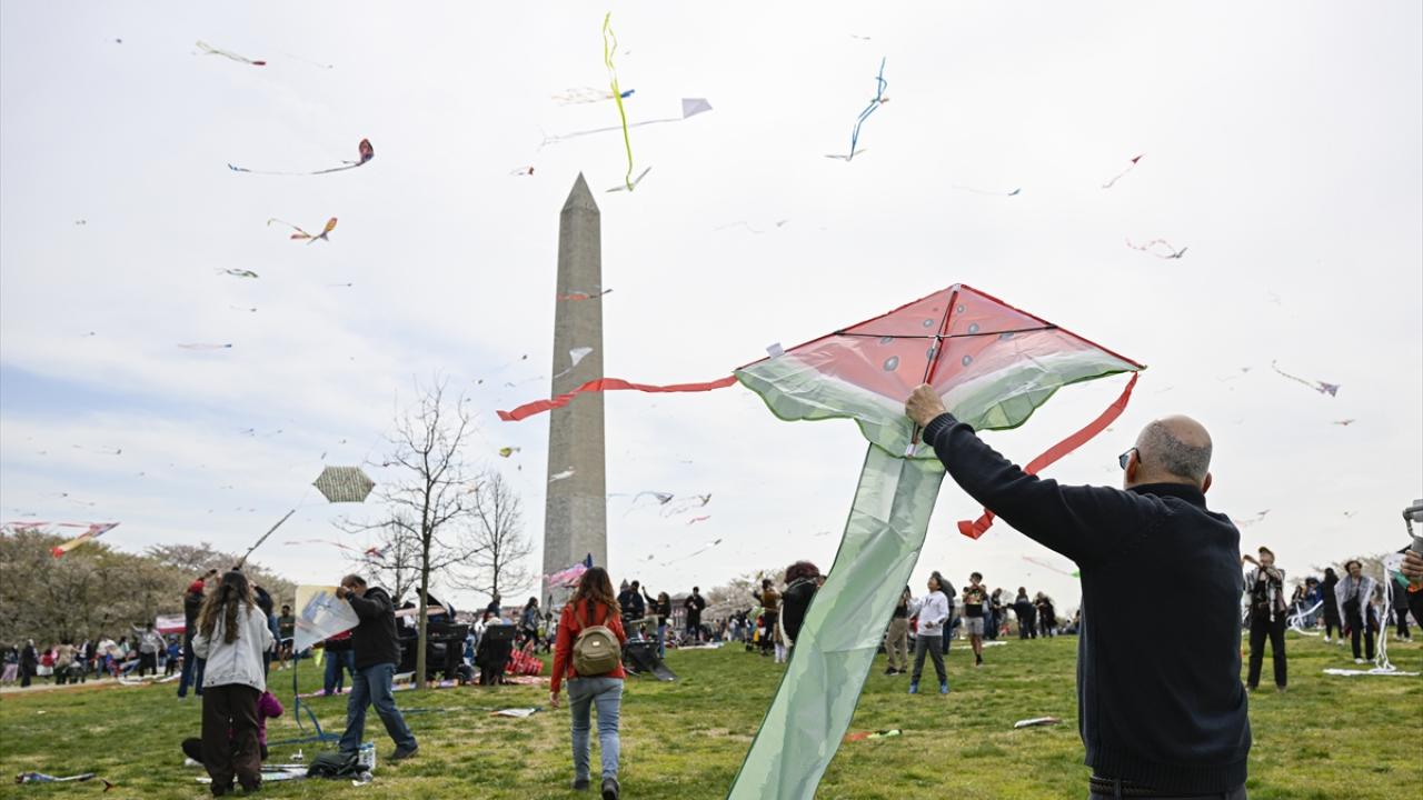 ABD’nin başkenti Washington’daki National Mall'da baharın gelişini kutlamak amacıyla gerçekleştirilen Ulusal Kiraz Çiçeği Uçurtma Festivaline vatandaşlar ilgi gösterdi. Festivale katılanlar Filistin’e destek vermek için Filistin bayrağı ve karpuz gibi çeşitli şekillerde uçurtmalarını uçurdu.