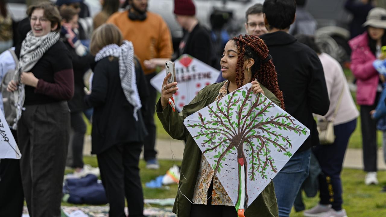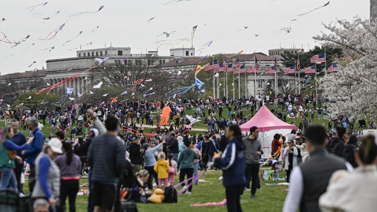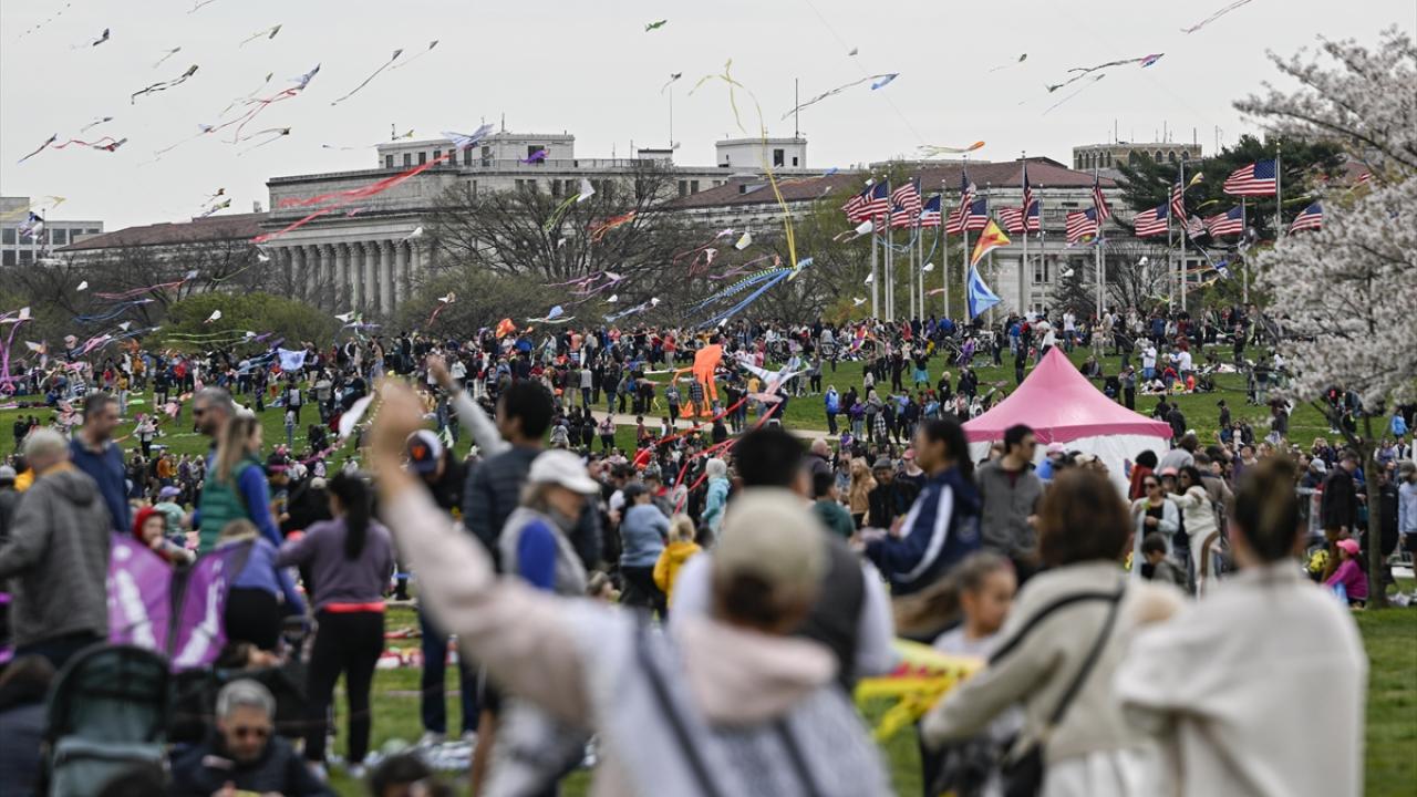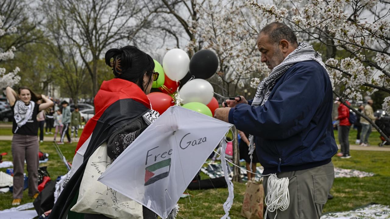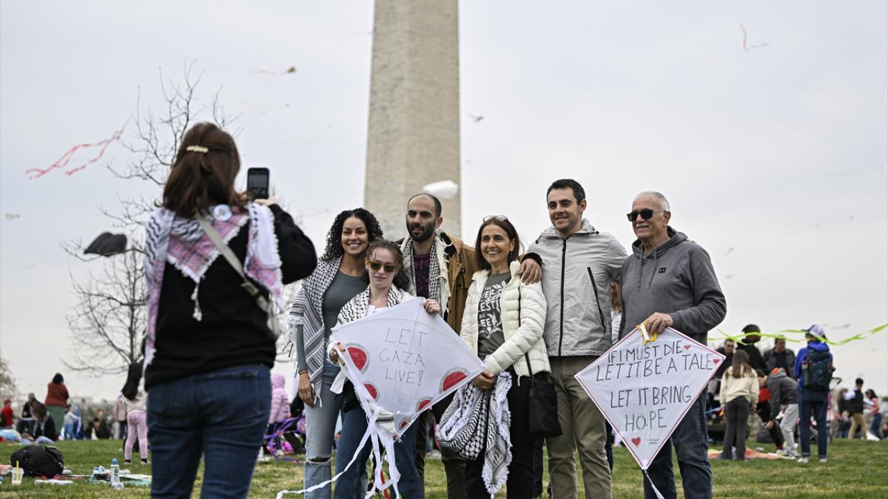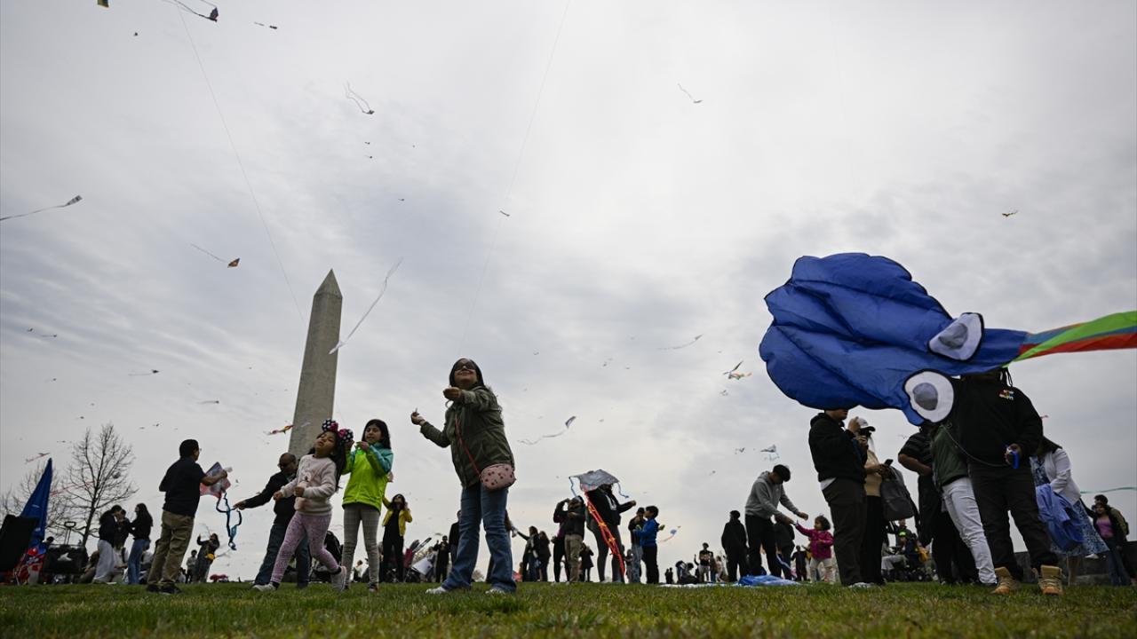 ABD’nin başkenti Washington’daki National Mall'da baharın gelişini kutlamak amacıyla gerçekleştirilen Ulusal Kiraz Çiçeği Uçurtma Festivaline vatandaşlar ilgi gösterdi. Festivale katılanlar Filistin’e destek vermek için Filistin bayrağı ve karpuz gibi çeşitli şekillerde uçurtmalarını uçurdu.
