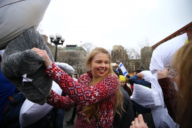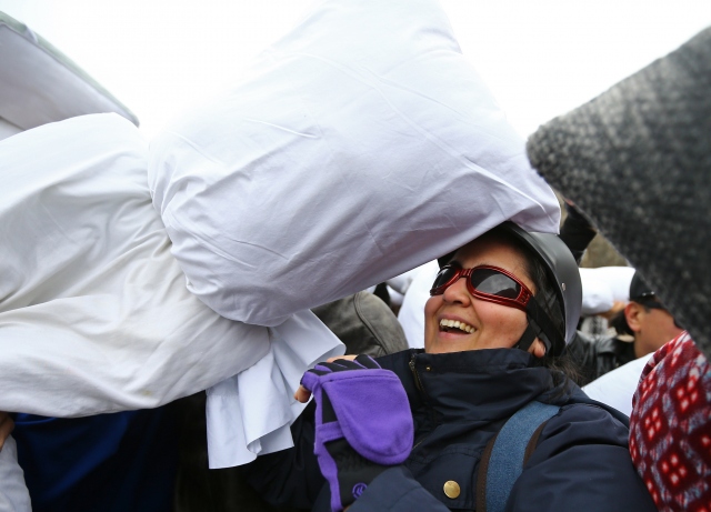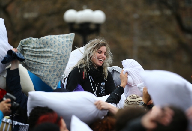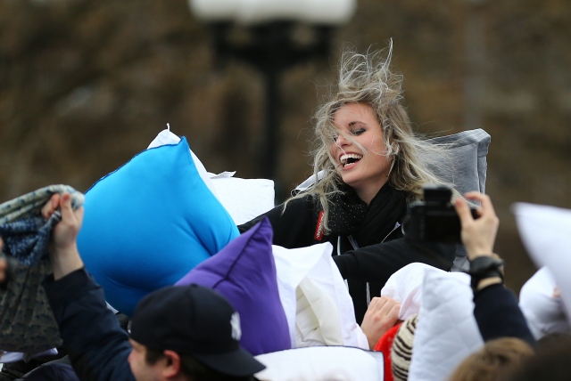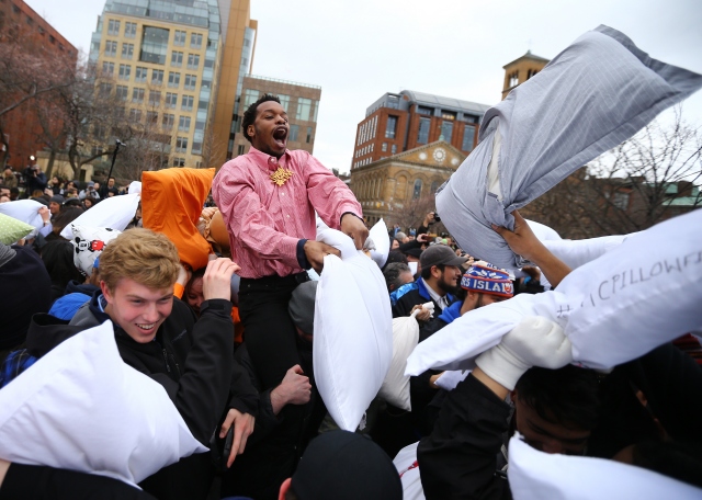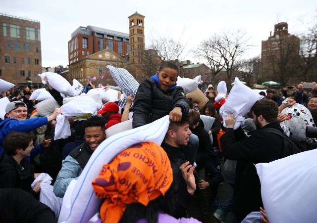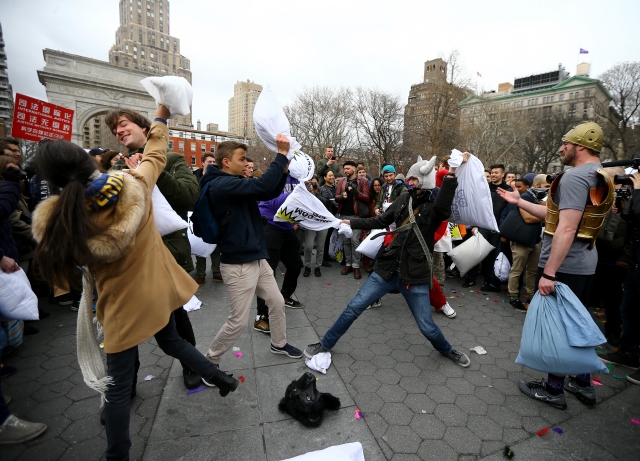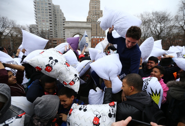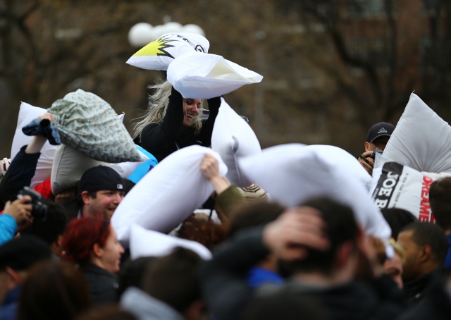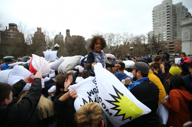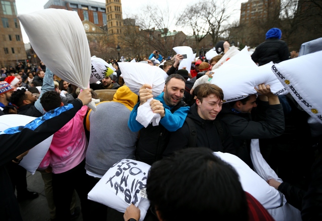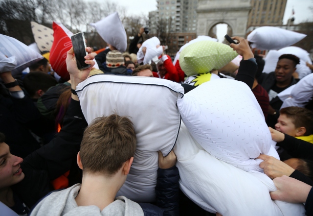 New York'ta Washington Meydanı'nda toplanan yüzlerce Amerikalı yastık savaşı yaptı. Her yıl nisan ayında gerçekleştirilen ''Uluslararası Yastık Savaşı Günü'', New York'ta kutlandı.
