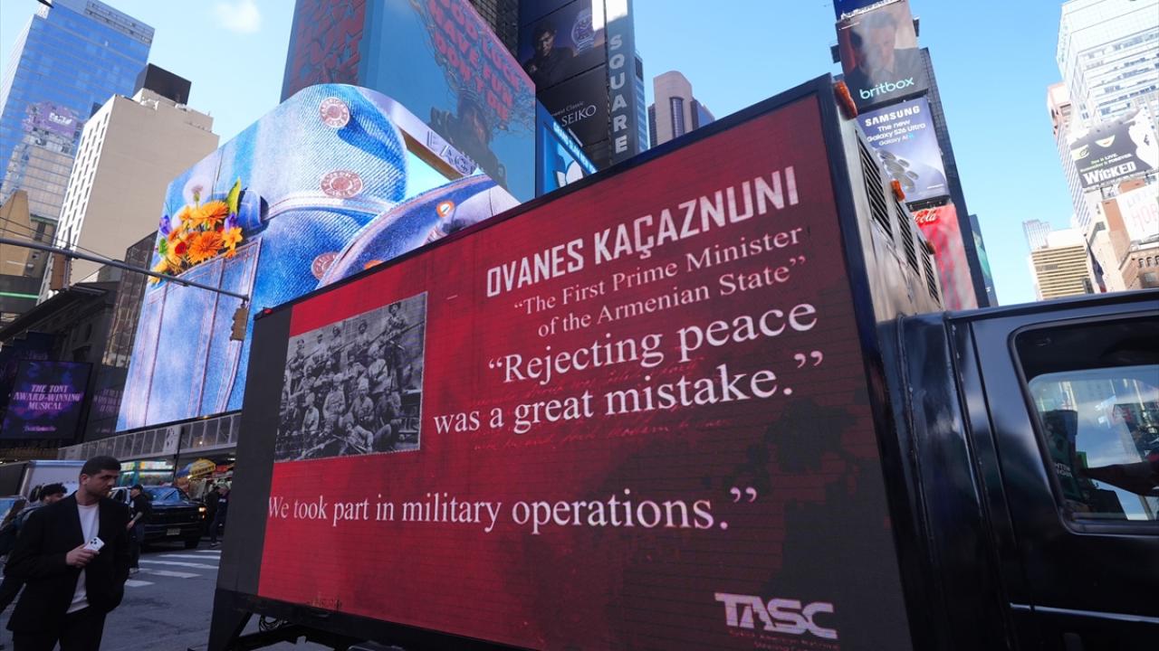 Türk-Amerikan toplumu, New York Belediye Başkanı Zohran Mamdani'nin 1915 olaylarına ilişkin paylaşımına tepki gösterdi. Türk bayrağı giydirilmiş ve söz konusu iddialara karşı bilgilerin yer aldığı dijital kamyonlar da Times Meydanı'ndan geçiş yaptı.