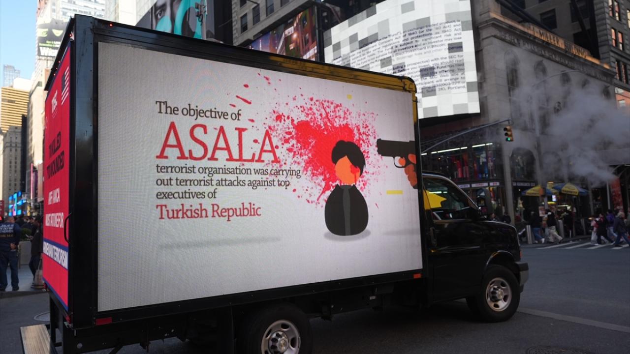 Türk bayrağı giydirilmiş ve söz konusu iddialara karşı bilgilerin yer aldığı dijital kamyonlar da Times Meydanı`ndan geçiş yaptı.
