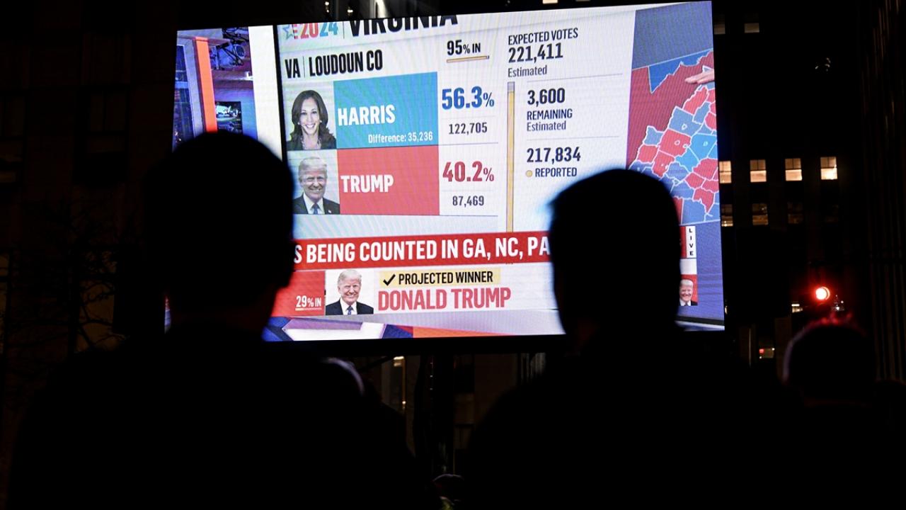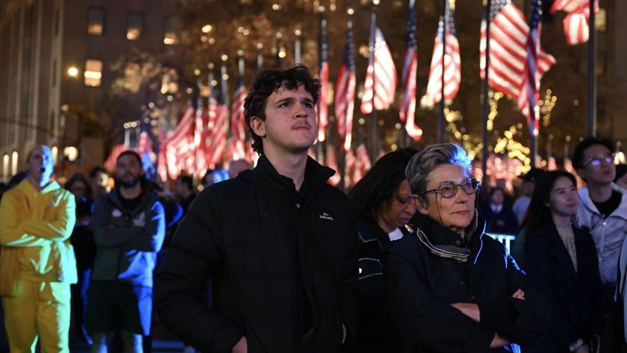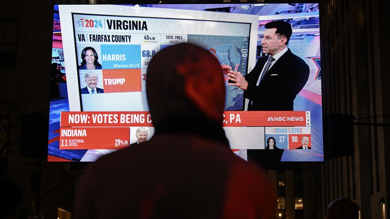 Demokrat Kamala Harris ile Cumhuriyetçi Donald Trump'ın başkan olmak için yarıştığı seçimlerde ilk sandıkların sayılmaya başlamasıyla birlikte, New York'lular seçim sonuçlarını kurulan dev ekranlardan izliyor.