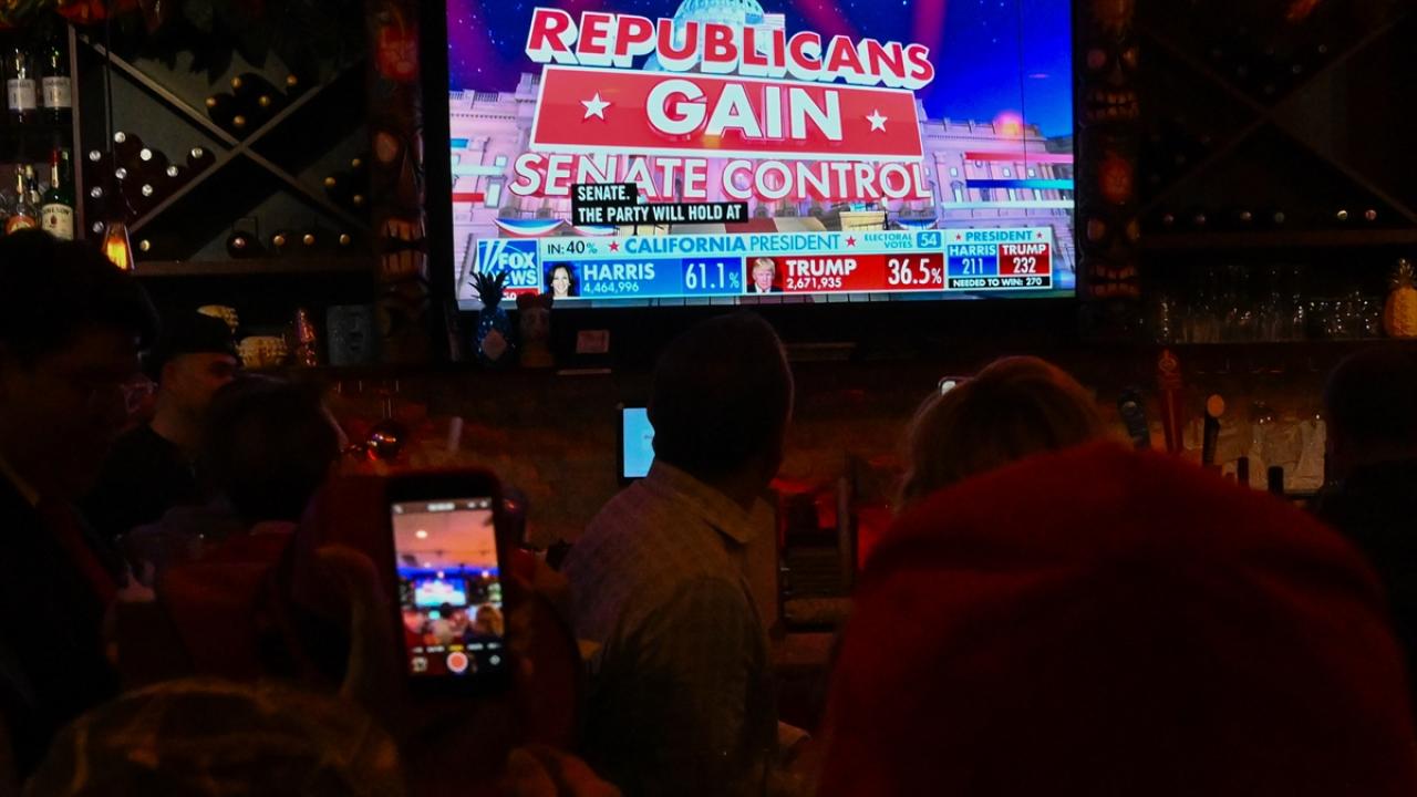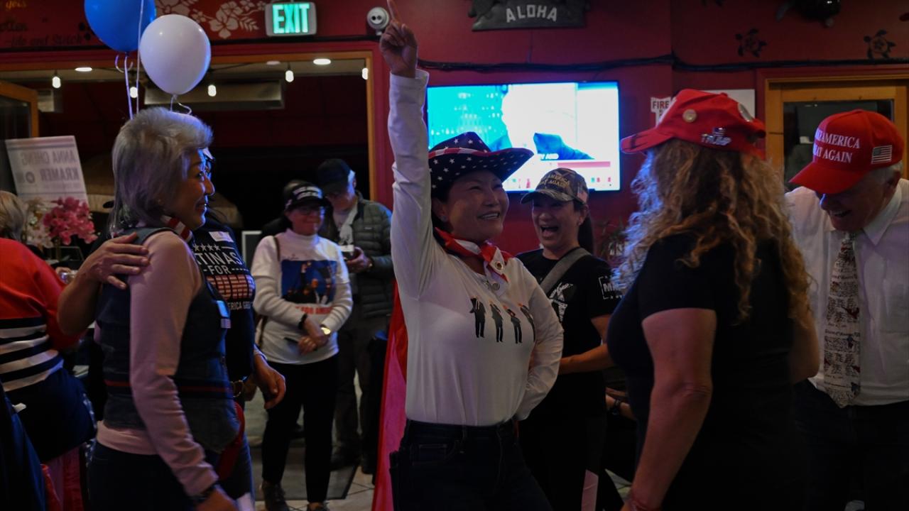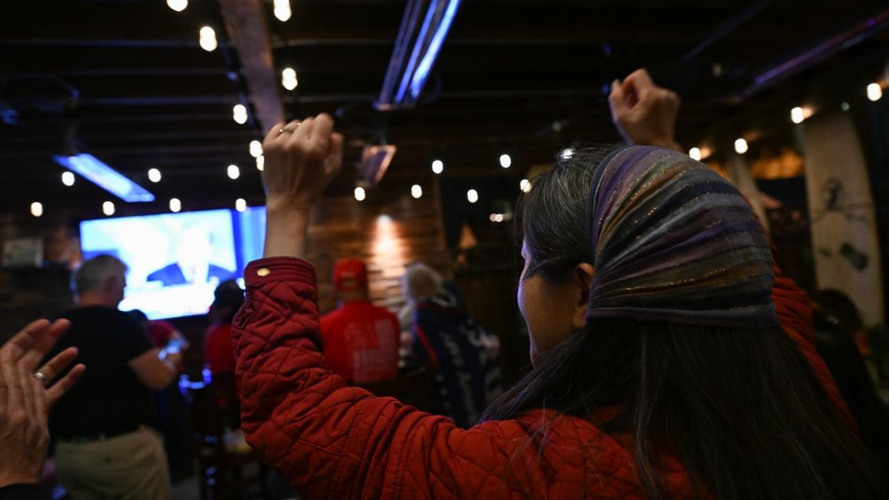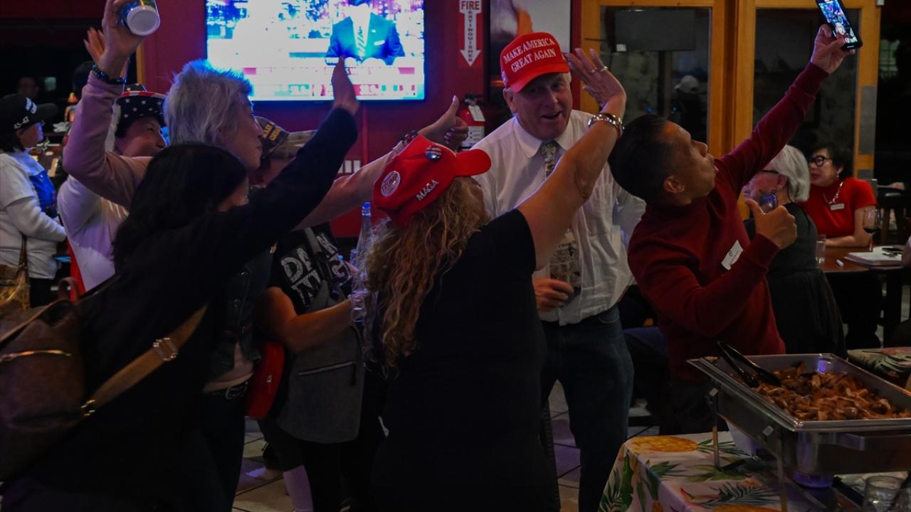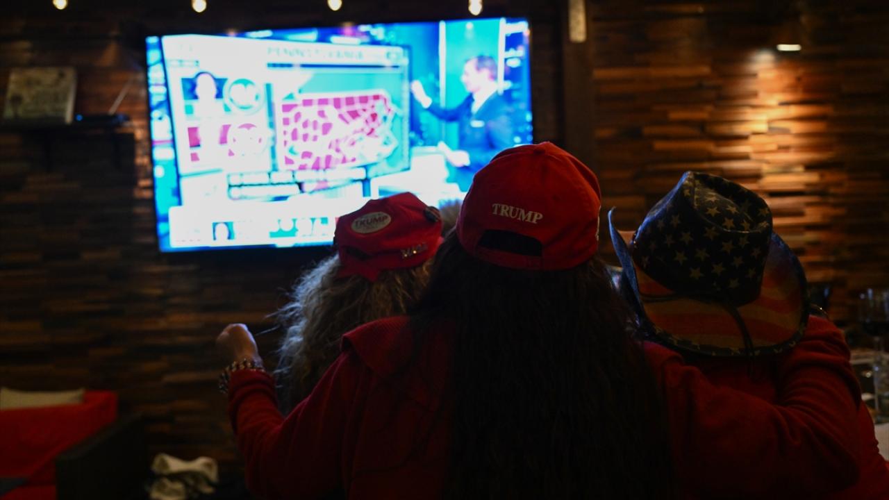 Demokrat Kamala Harris ile Cumhuriyetçi Donald Trump`ın başkan olmak için yarıştığı seçimlerde sandıkların sayılması devam ederken, California San Carlos`da bir araya gelen Trump destekçisi vatandaşlar, 60. başkanlık seçimlerinin sonucuna ilişkin olarak yayınlanan televizyon programlarını kurulan dev ekranlardan izledi.