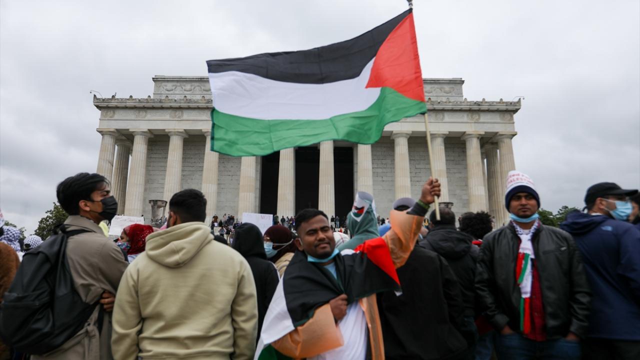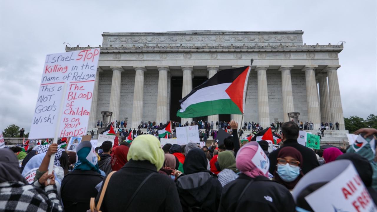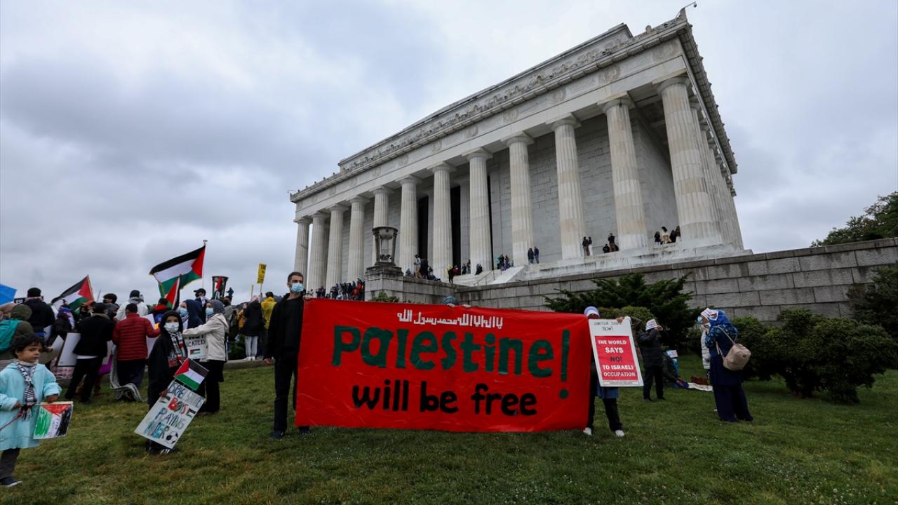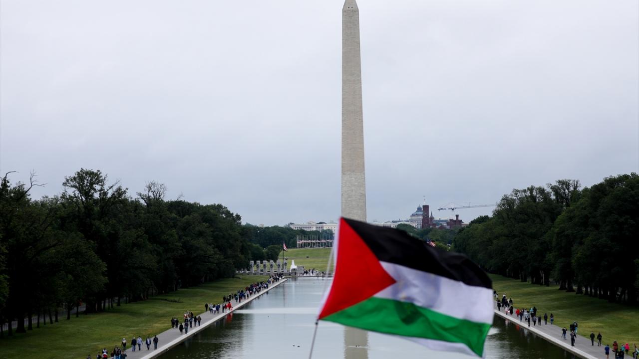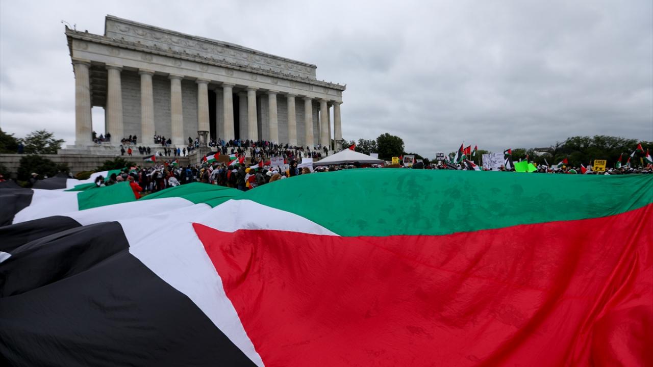 Öte yandan kentin bir diğer sembolü olan Washington Anıtı ve Lincoln Anıtı`nın ortasında açılan yüzlerce Filistin bayrağı ilginç görüntüler oluşturdu.