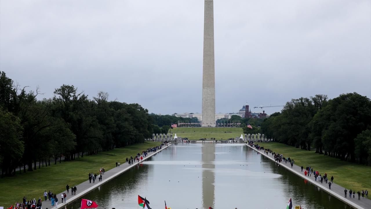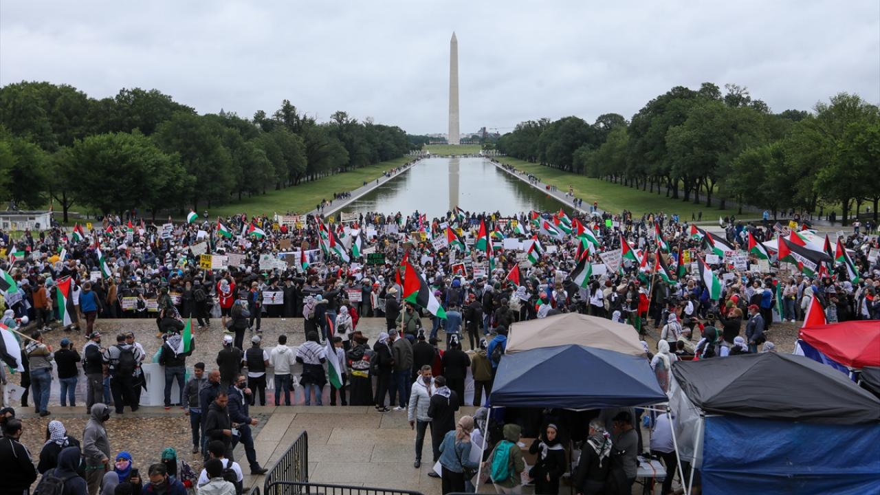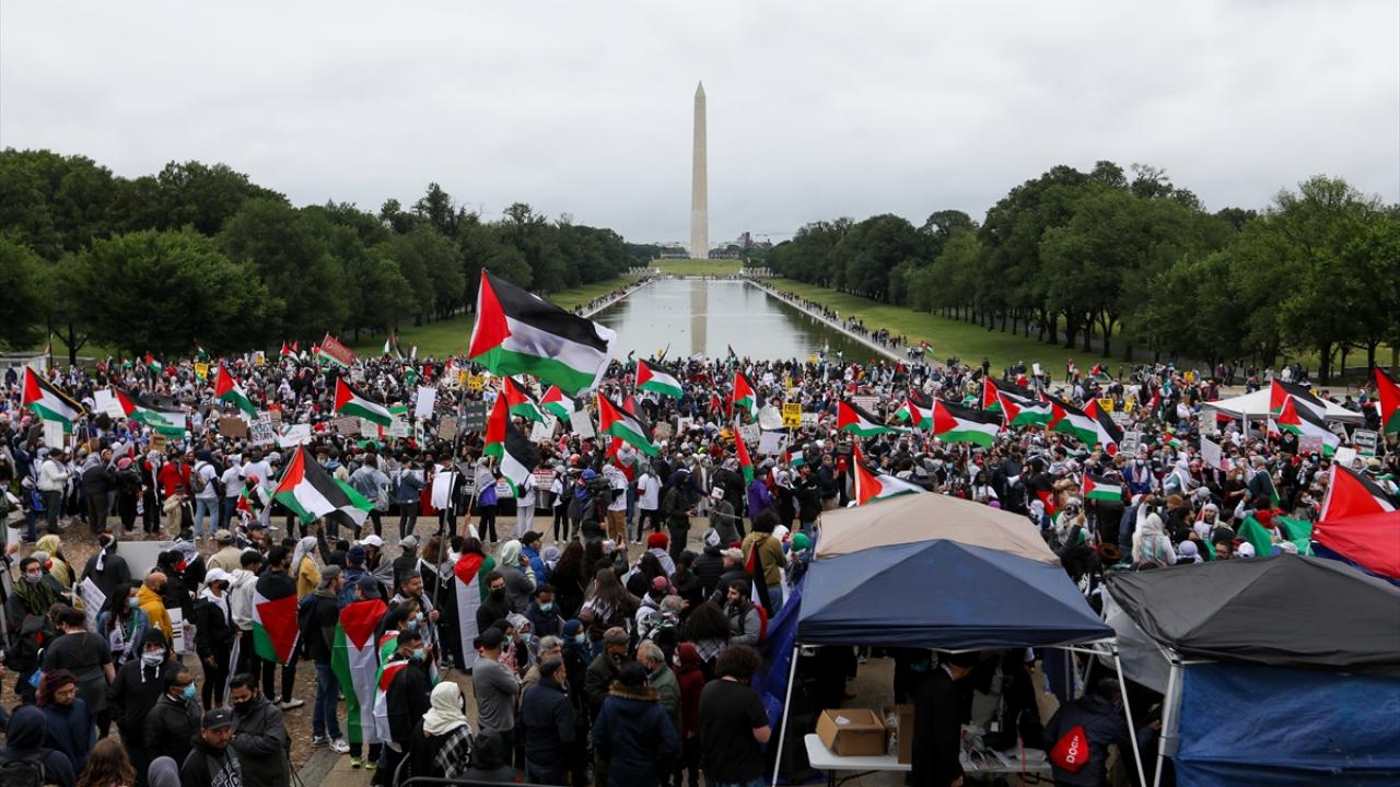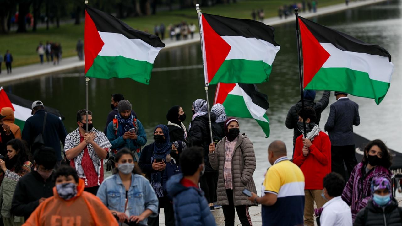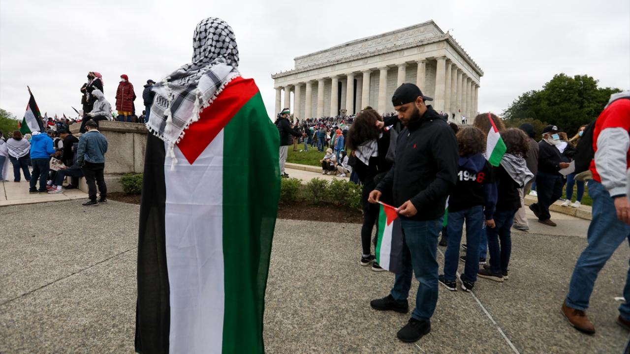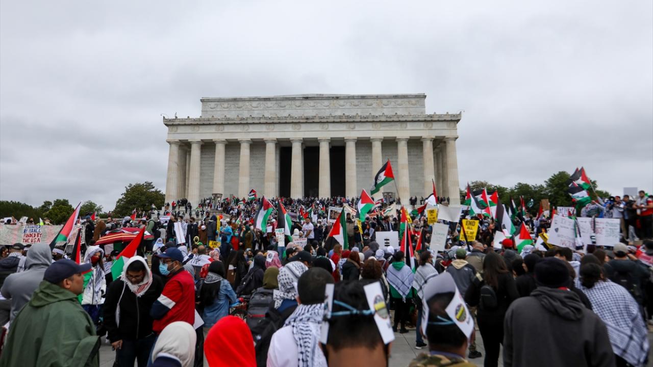Öte yandan kentin bir diğer sembolü olan Washington Anıtı ve Lincoln Anıtı`nın ortasında açılan yüzlerce Filistin bayrağı ilginç görüntüler oluşturdu.