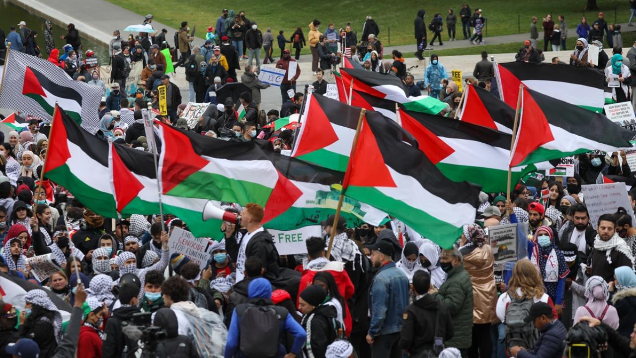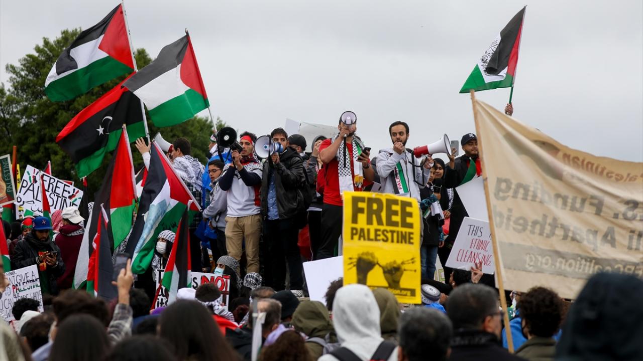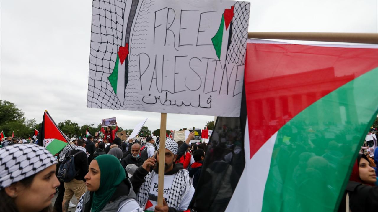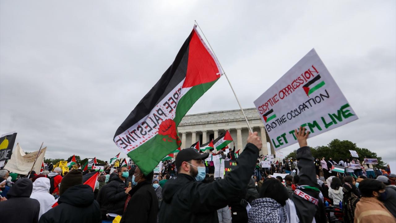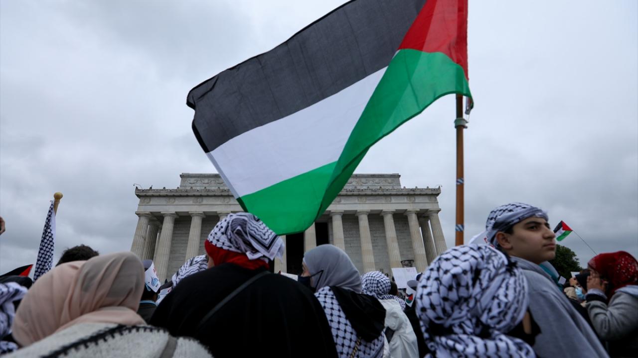 Öte yandan kentin bir diğer sembolü olan Washington Anıtı ve Lincoln Anıtı`nın ortasında açılan yüzlerce Filistin bayrağı ilginç görüntüler oluşturdu.