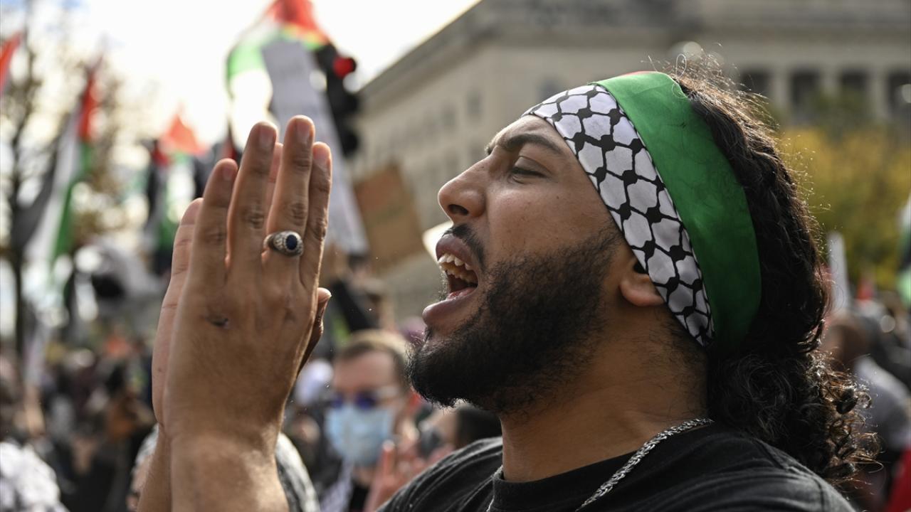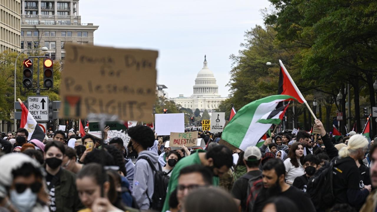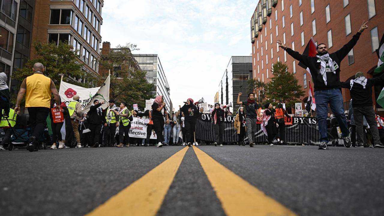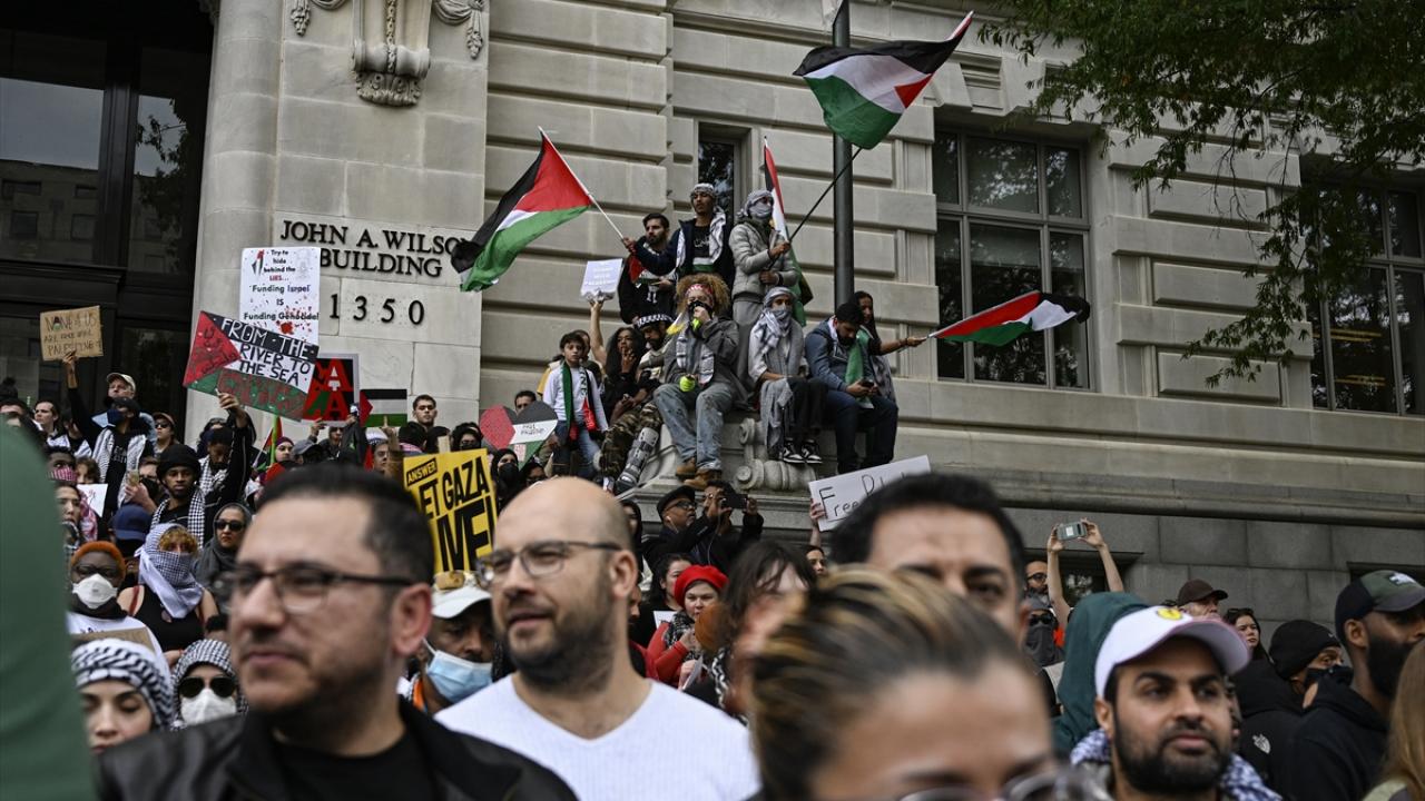 ABD’nin başkenti Washington'da bulunan Freedom Plaza çevresinde toplanan çok sayıda kişi, Filistin'e destek gösterisi düzenledi. Ellerinde pankart ve Filistin bayrakları taşıyan göstericiler, Beyaz Saray önüne gelerek İsrail'in Gazze'ye yönelik saldırılarını protesto etti.