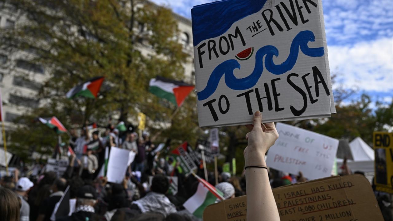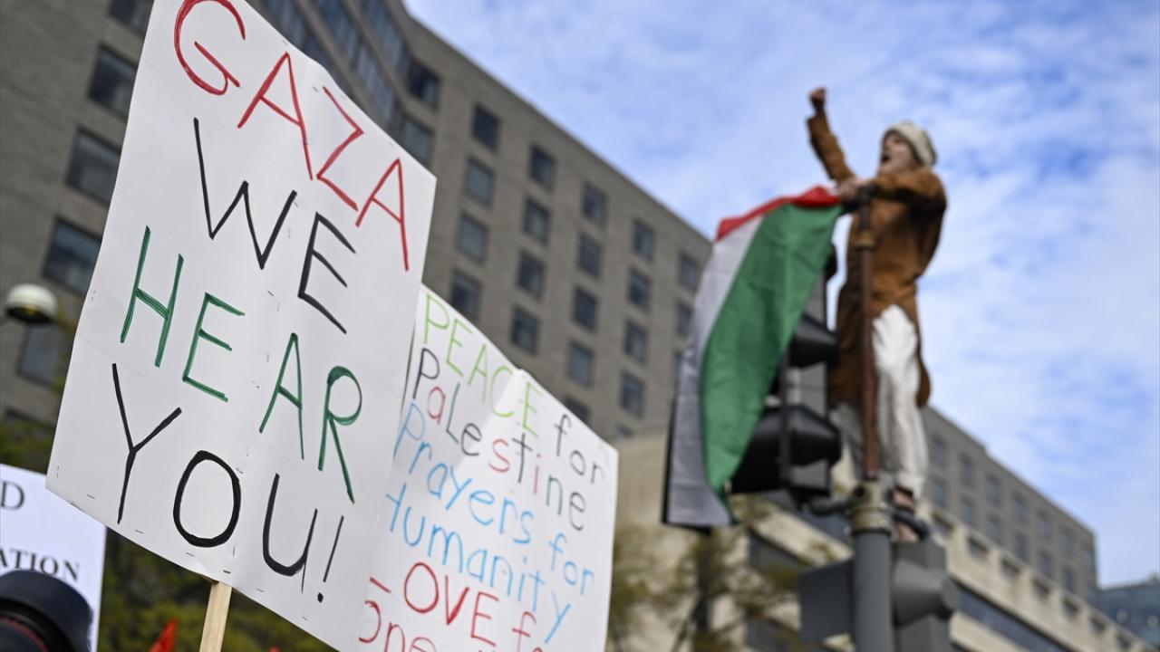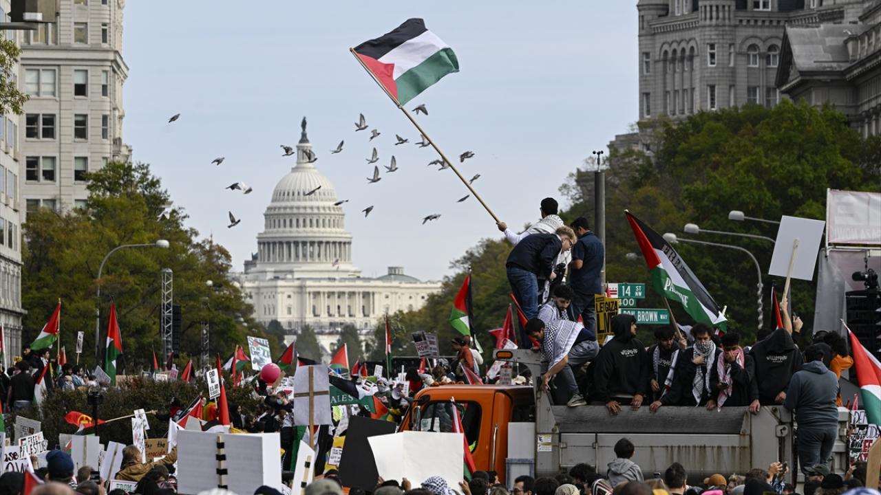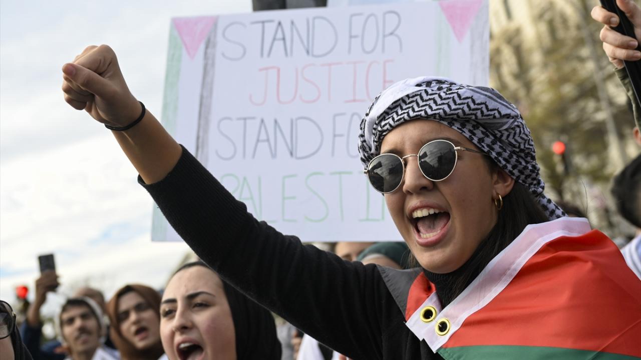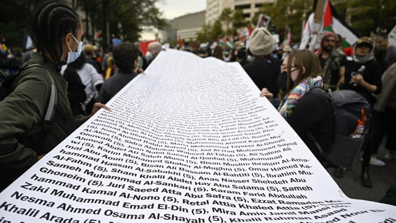 ABD’nin başkenti Washington'da bulunan Freedom Plaza çevresinde toplanan çok sayıda kişi, Filistin'e destek gösterisi düzenledi. Ellerinde pankart ve Filistin bayrakları taşıyan göstericiler, Beyaz Saray önüne gelerek İsrail'in Gazze'ye yönelik saldırılarını protesto etti.