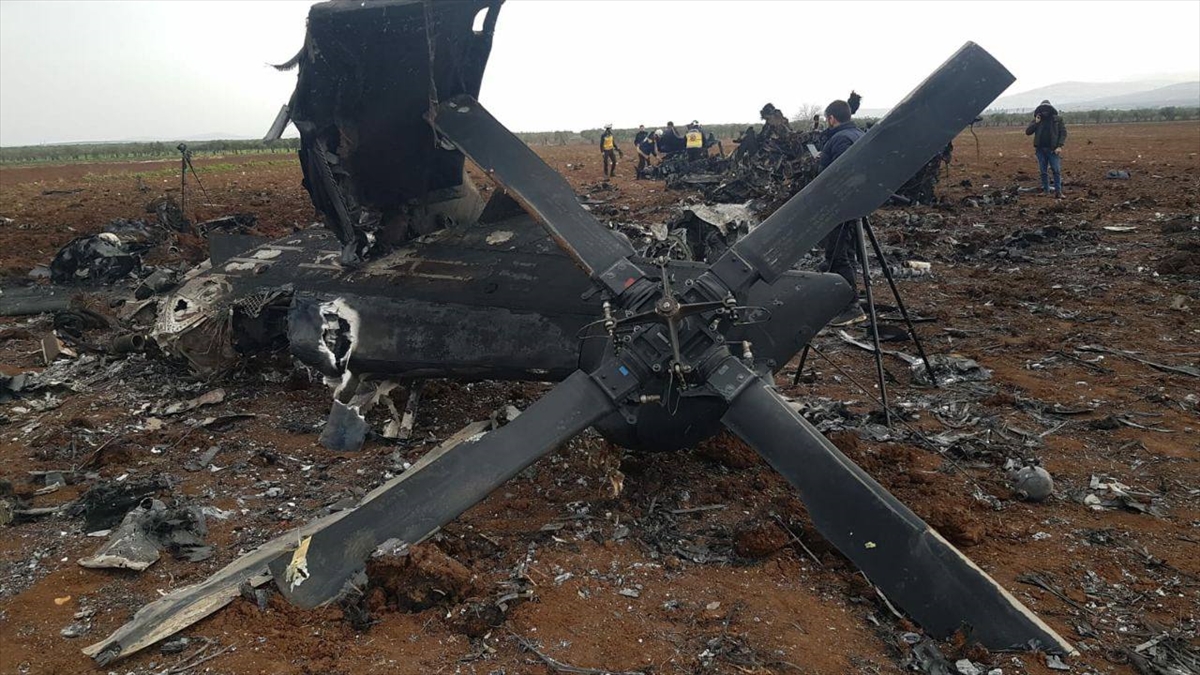 ABD'nin İdlib'deki operasyonda imha ettiği helikopter görüntülendi