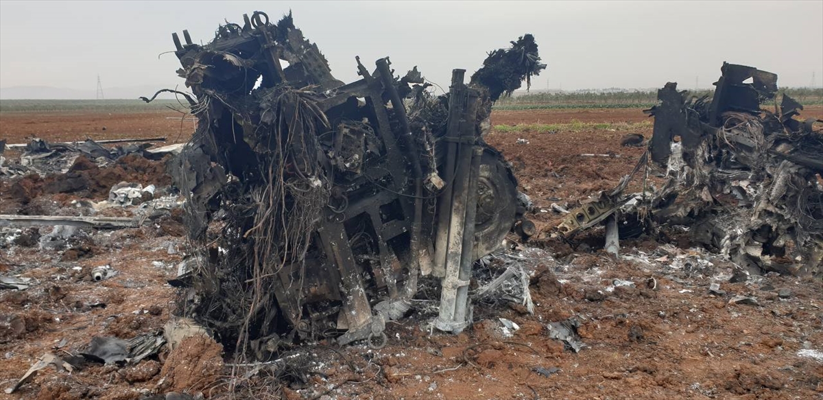 Enkaz, İdlib`in doğusundaki Afrin ilçesinin Cinderes beldesi yakınlarında görüntülendi.