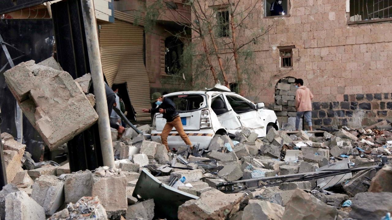 Yemen`in başkenti Sana`daki el-Ceraf bölgesine düzenlenen saldırı sonucu bölgedeki bir bina yıkıldı ve çevresinde hasar oluştu.