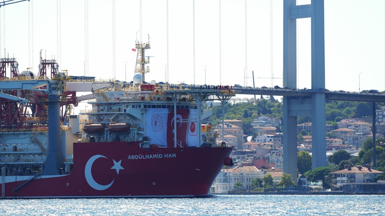 Abdülhamid Han Sondaj Gemisi Karadeniz'deki yeni görevi için İstanbul Boğazı'ndan geçti.