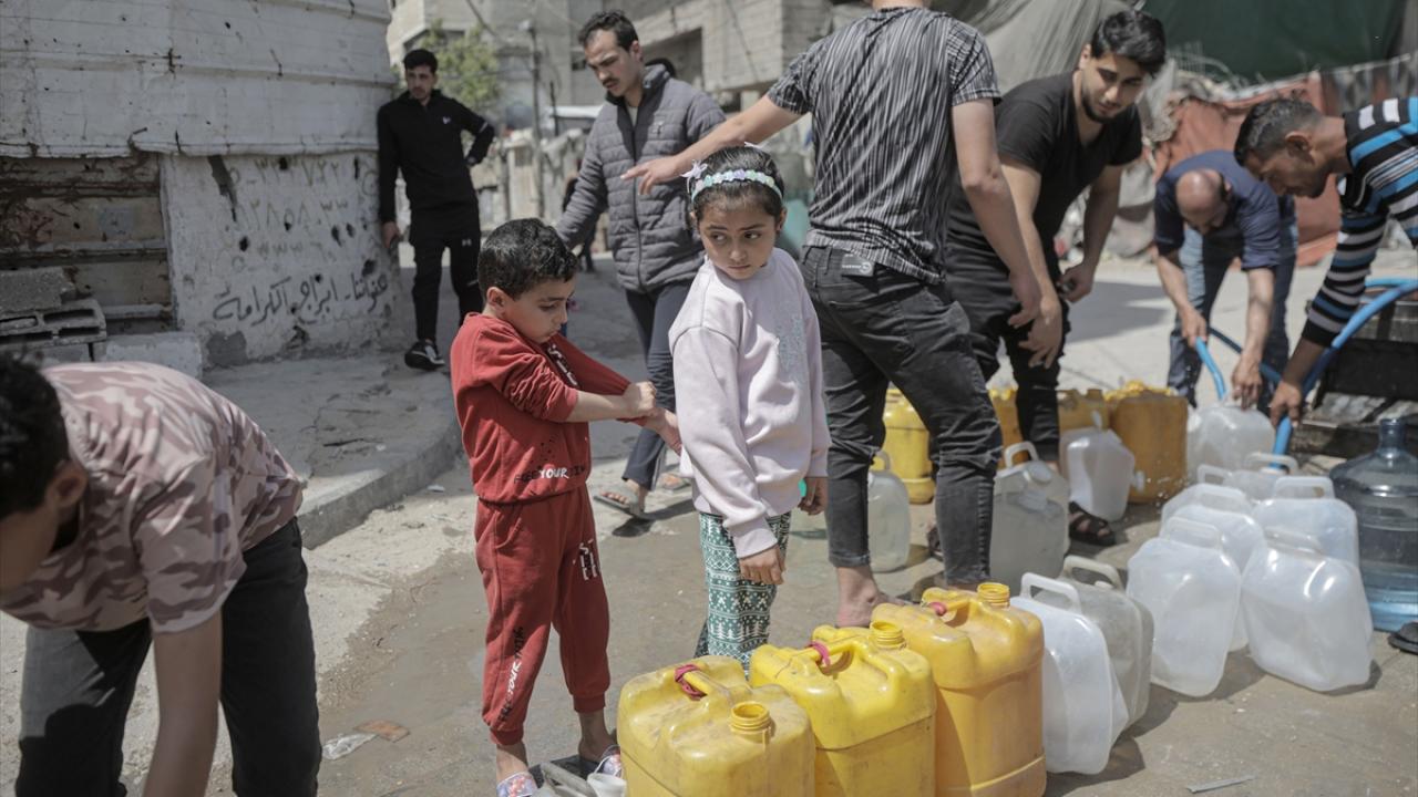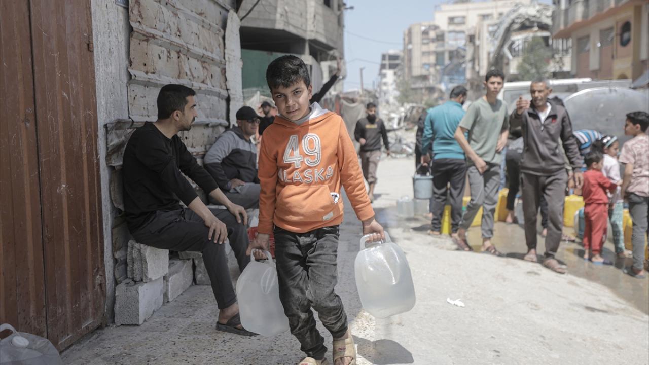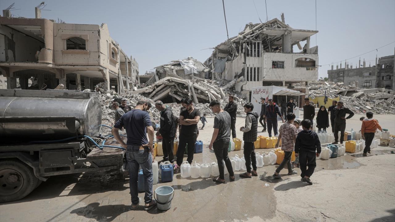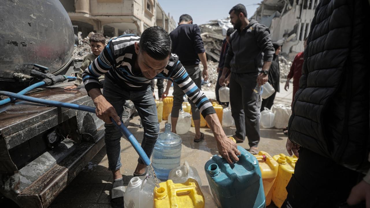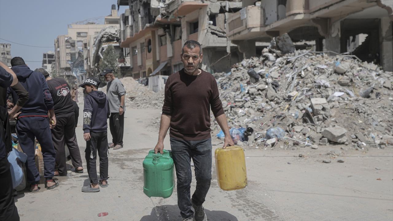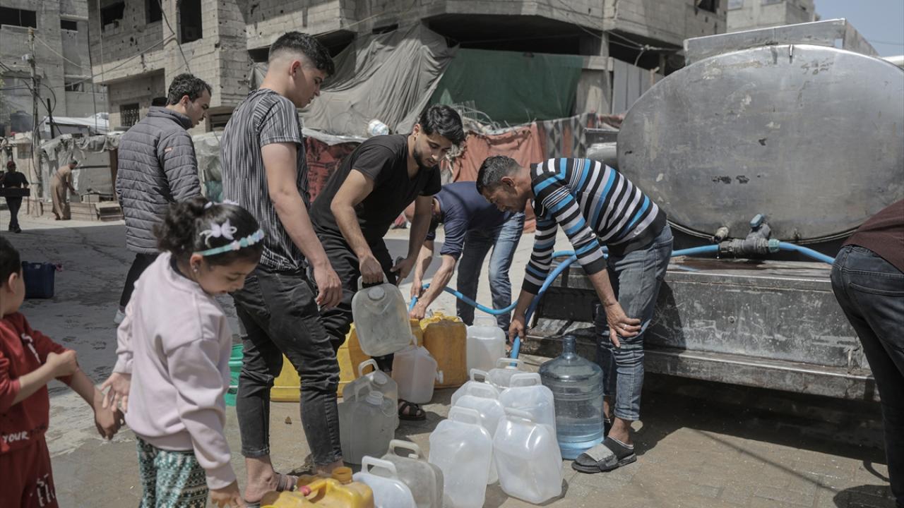İsrail saldırıları sonucu altyapının ağır hasar görmesi sebebiyle su krizinin yaşandığı Gazze Şeridi’nin batısında yer alan Şeyh Rıdvan Mahallesi’nde yaşayan Filistinliler, tankerlerin dağıttığı suları bidonlara doldurarak yaşam alanlarına taşıdı.