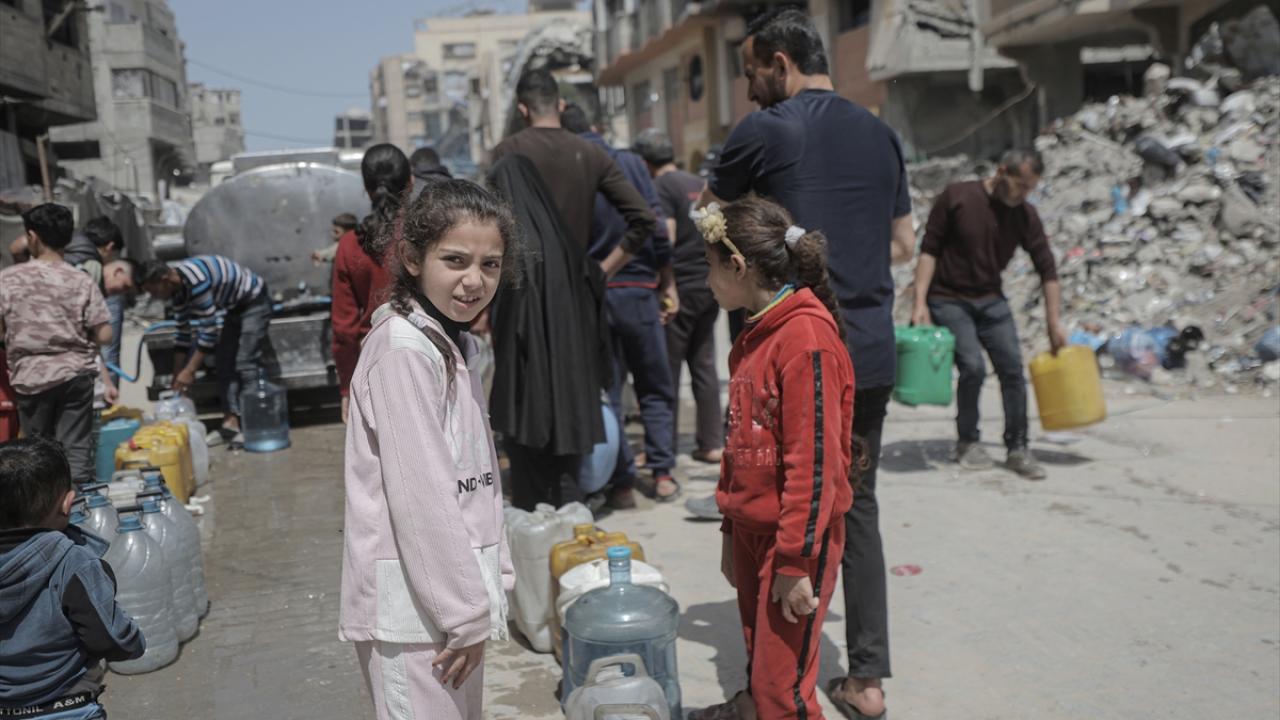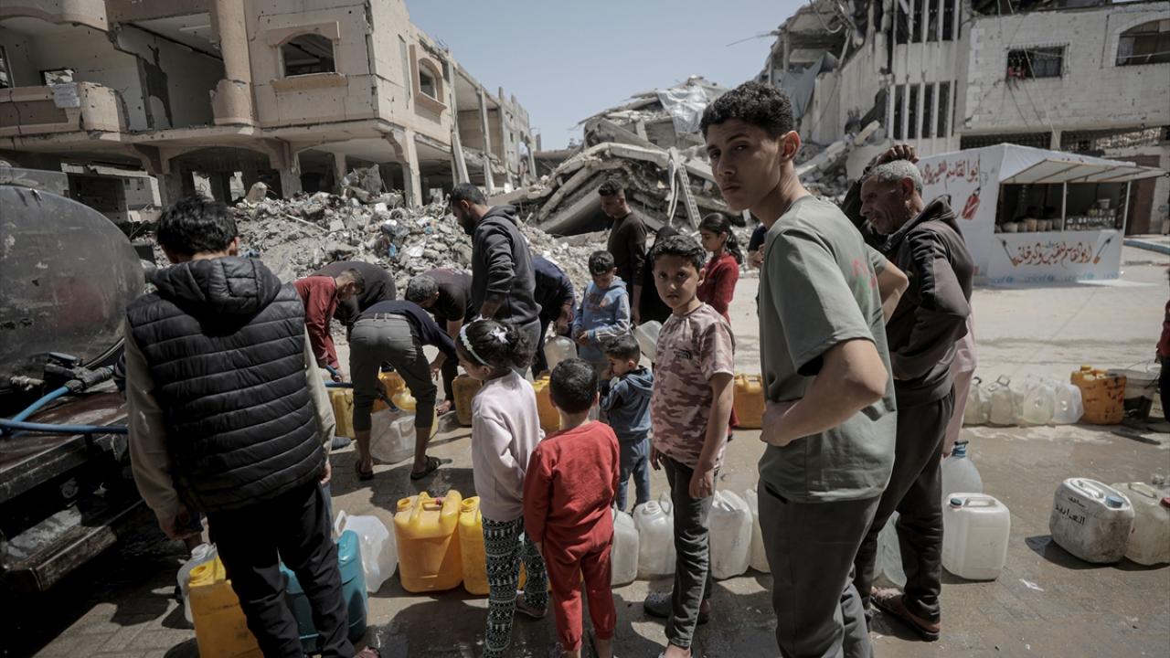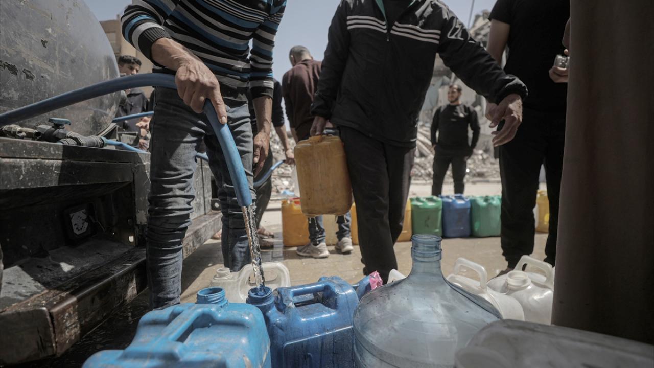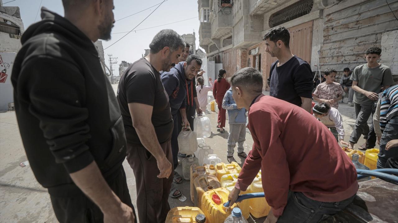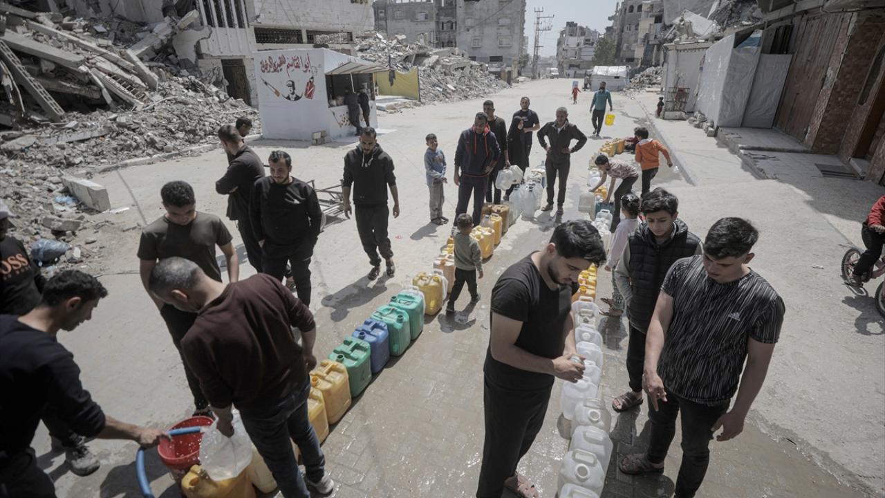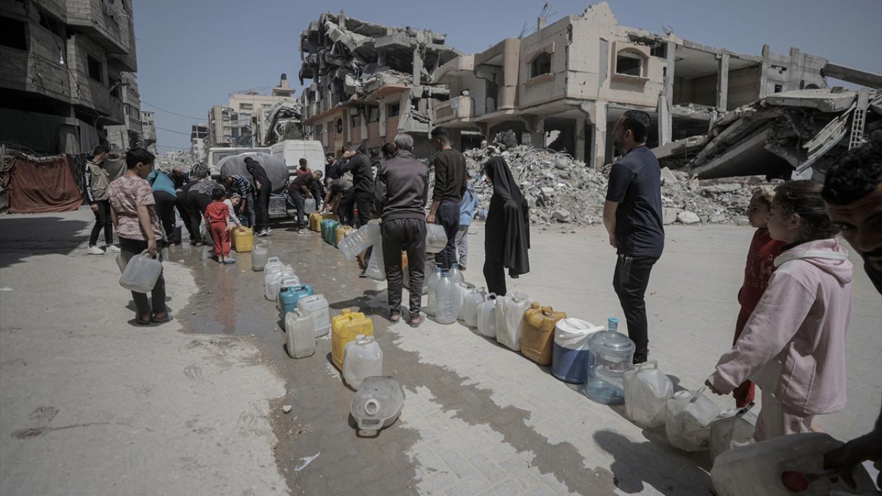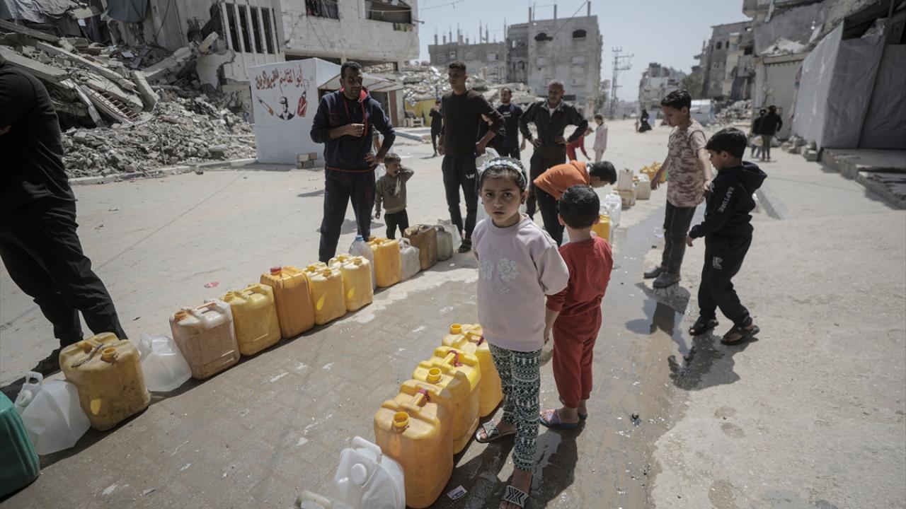 İsrail saldırıları sonucu altyapının ağır hasar görmesi sebebiyle su krizinin yaşandığı Gazze Şeridi’nin batısında yer alan Şeyh Rıdvan Mahallesi’nde yaşayan Filistinliler, tankerlerin dağıttığı suları bidonlara doldurarak yaşam alanlarına taşıdı.