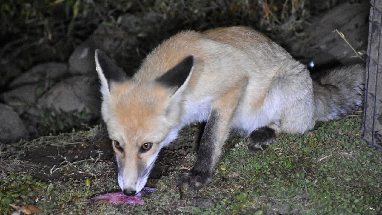 Muş'un Varto ilçesindeki Hamurpet Gölü yakınında aç kalan tilkinin, kamp kuran doğaseverlerin tuttuğu balıklarla beslendiği anlar kameraya yansıdı.