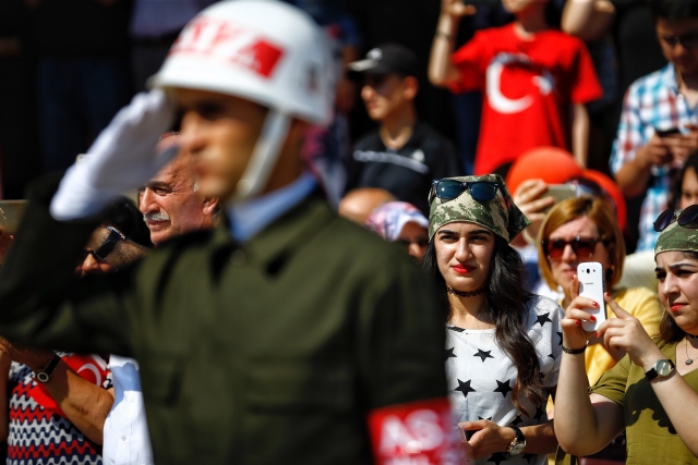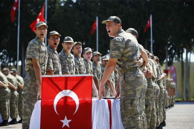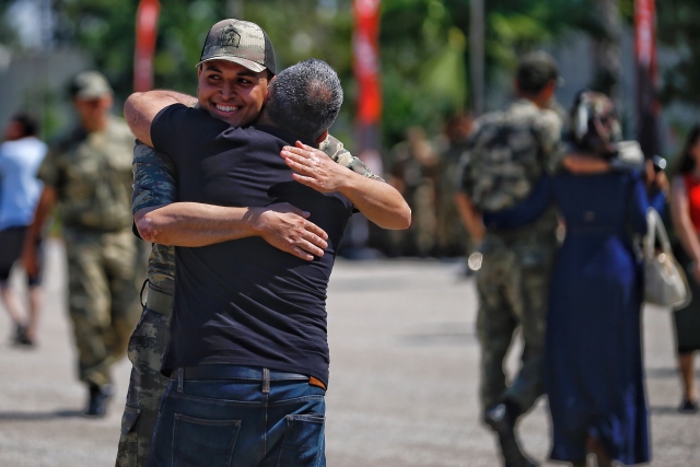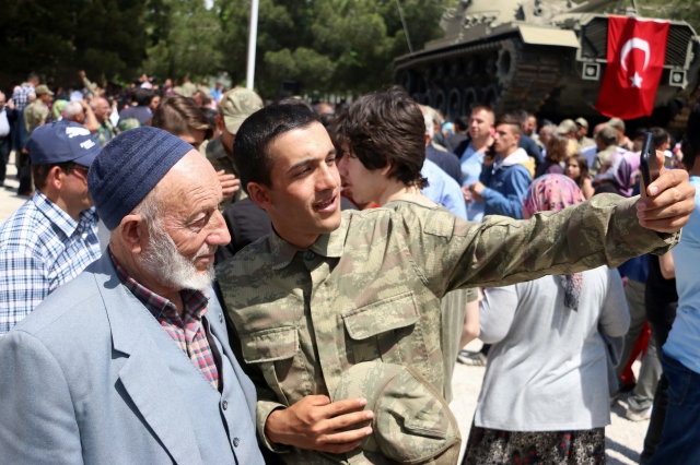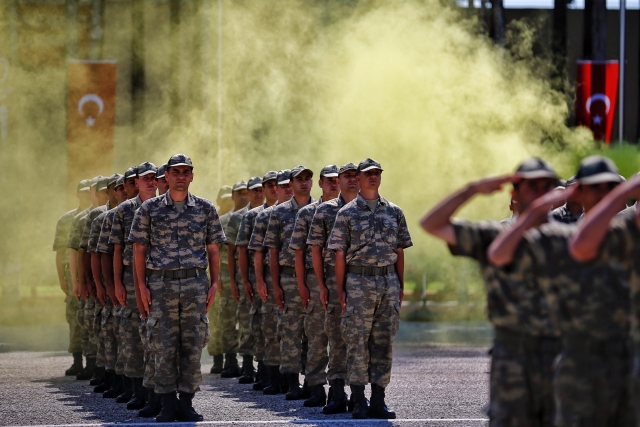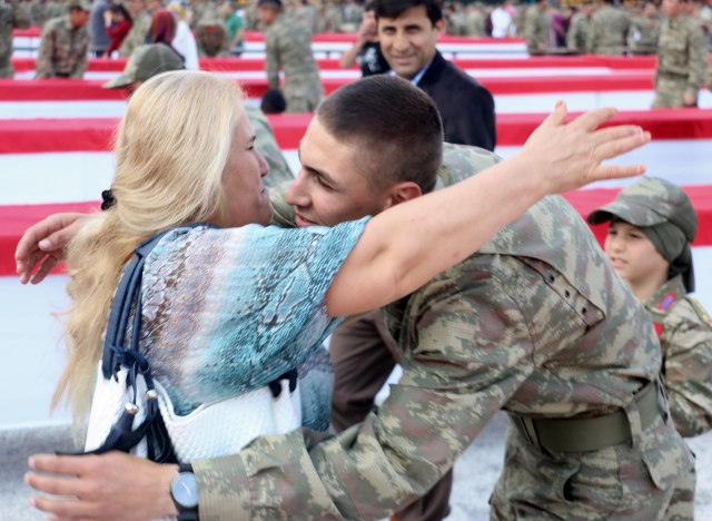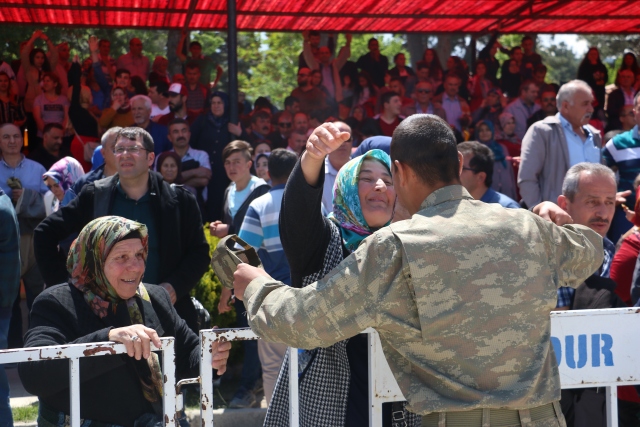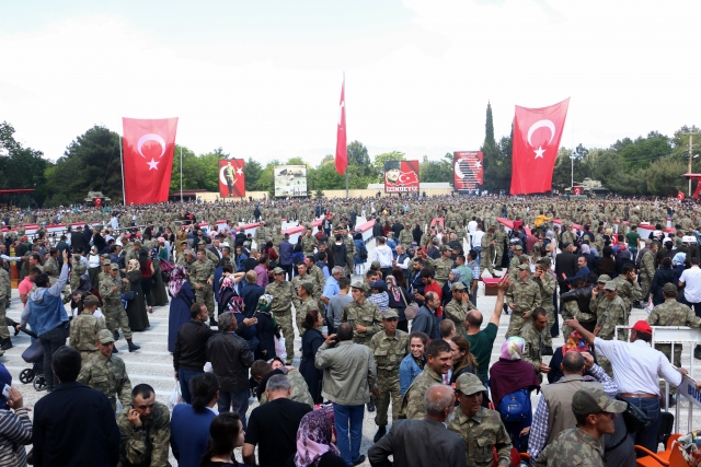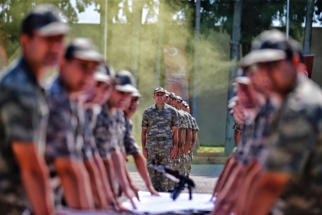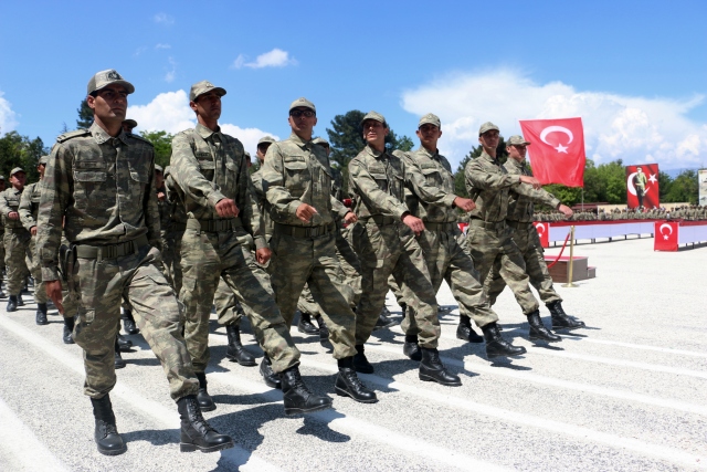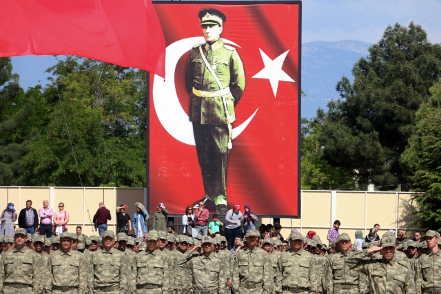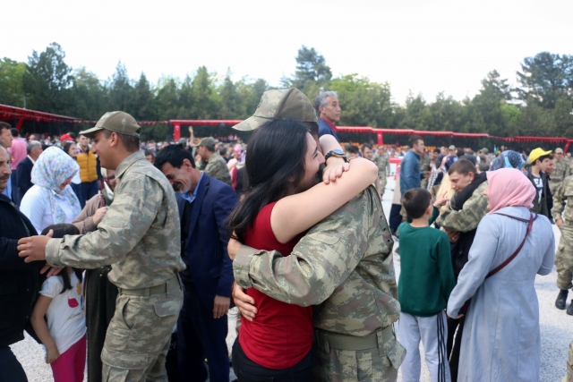 Antalya 3. Piyade Eğitim Tugayı'nda acemi eğitimlerini tamamlayan kısa dönem askerler için Topçular General Niyazi Çelik Kışlası'nda yemin töreni yapıldı. Törene aileler de katıldı.