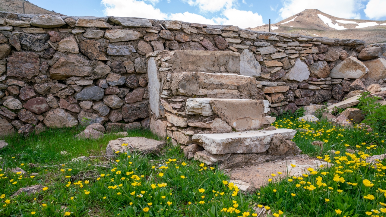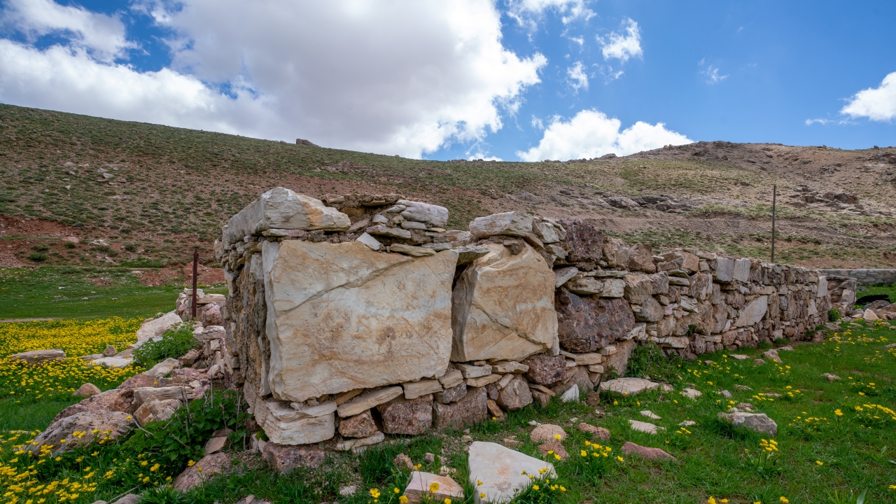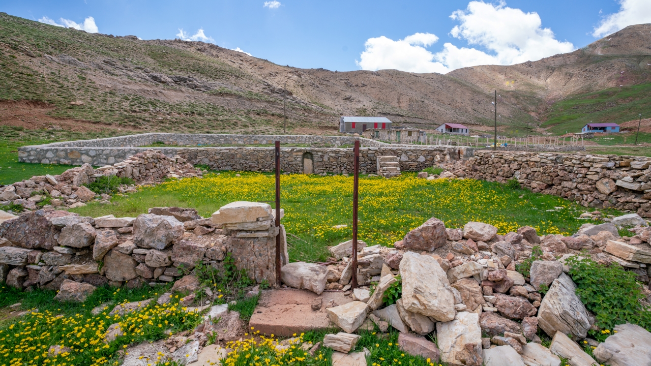 Yayla zamanı cemaatle kılınan namazların edası amacıyla çevredeki malzemelerle yapılan caminin taş duvarları sadece evcil ve yabani hayvanların girişini engelliyecek yükseklikte.