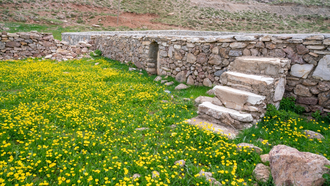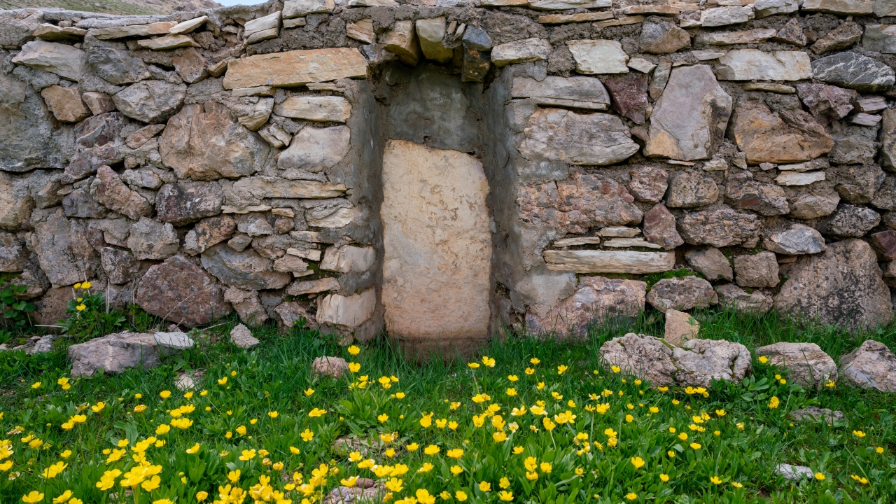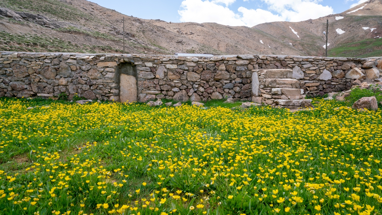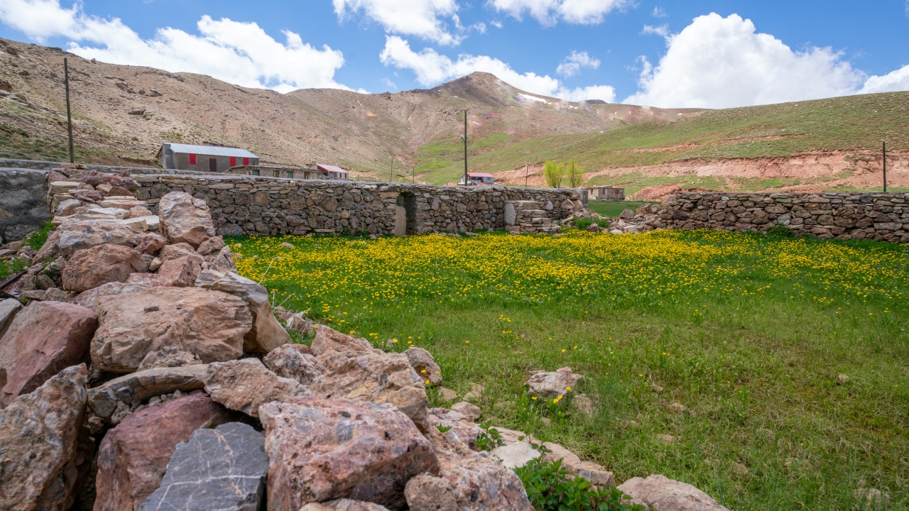 Yayla zamanı cemaatle kılınan namazların edası amacıyla çevredeki malzemelerle yapılan caminin taş duvarları sadece evcil ve yabani hayvanların girişini engelliyecek yükseklikte.