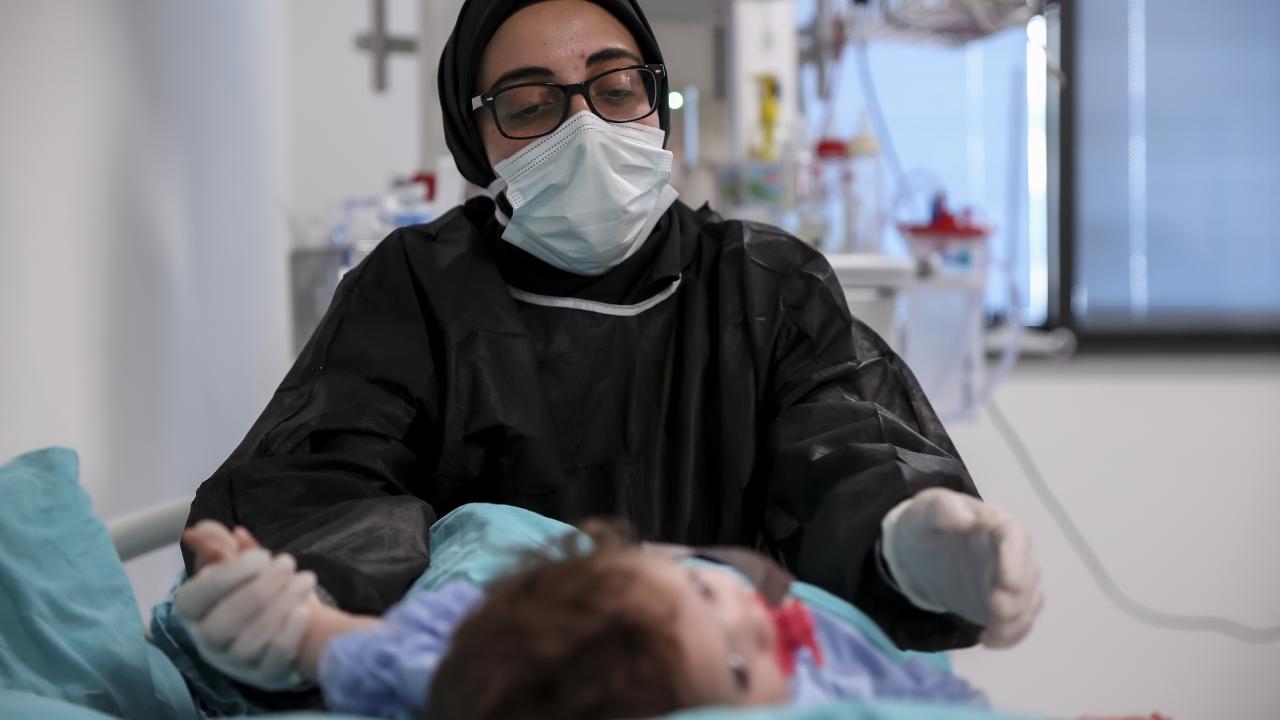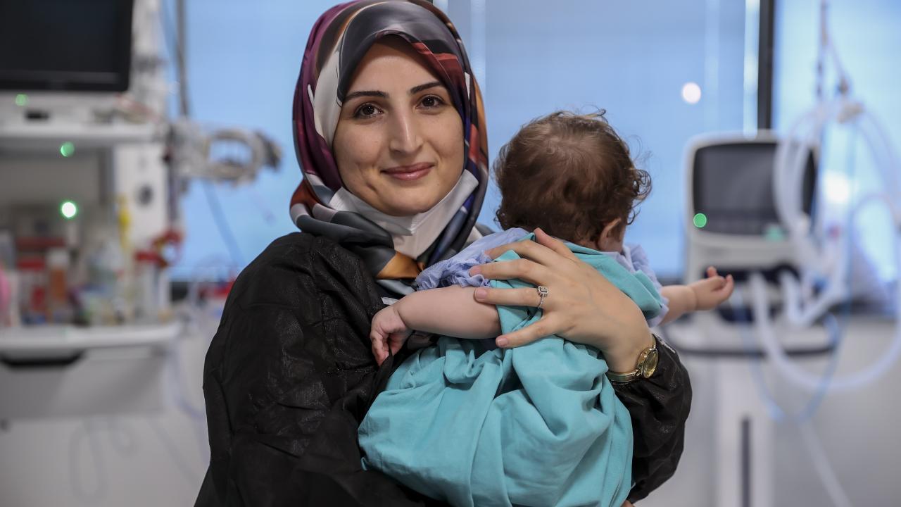 Vücudundaki ağır yanıklar nedeniyle tedavi için getirildiği Başakşehir Çam ve Sakura Şehir Hastanesinde annesinin terk ettiği 16 aylık kız bebeğe hemşireler `anne` şefkatiyle bakıyor.