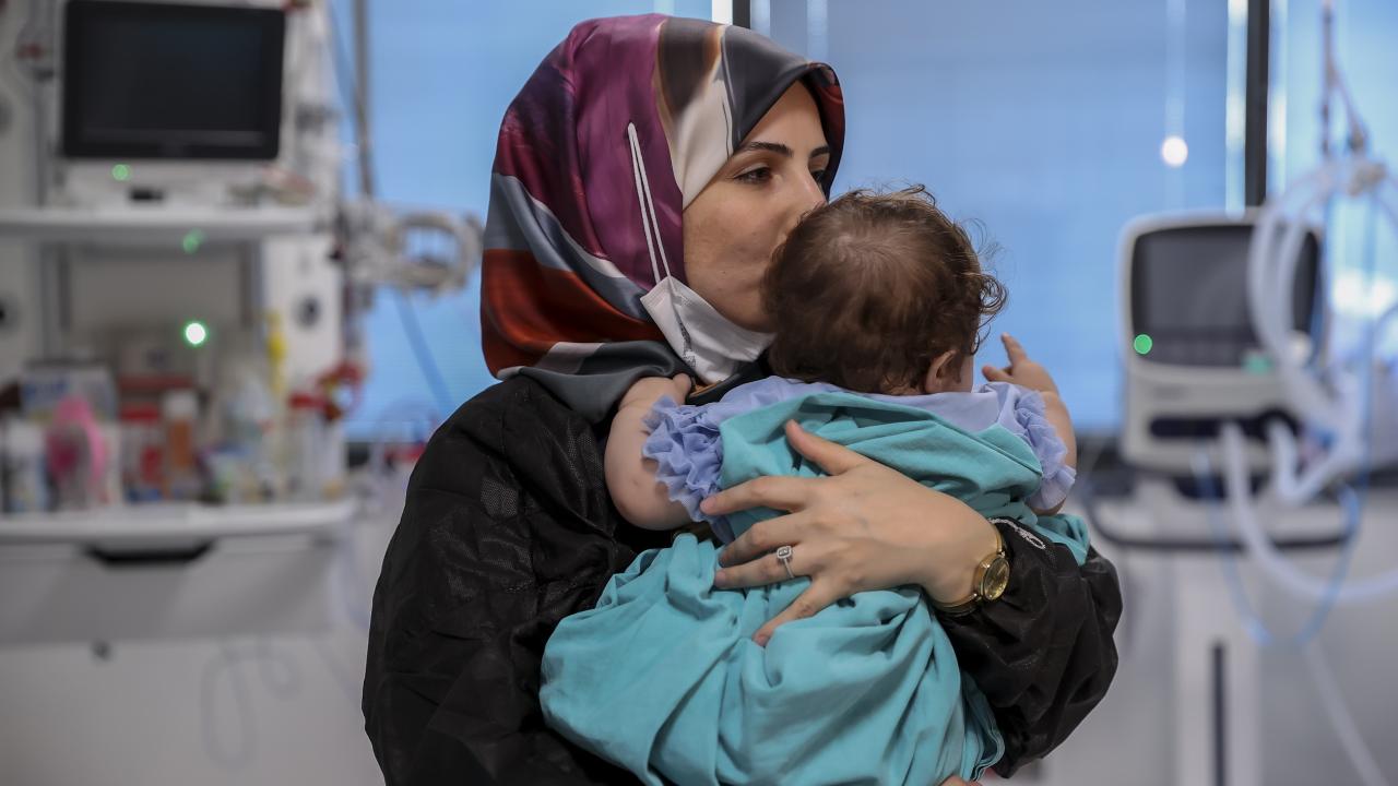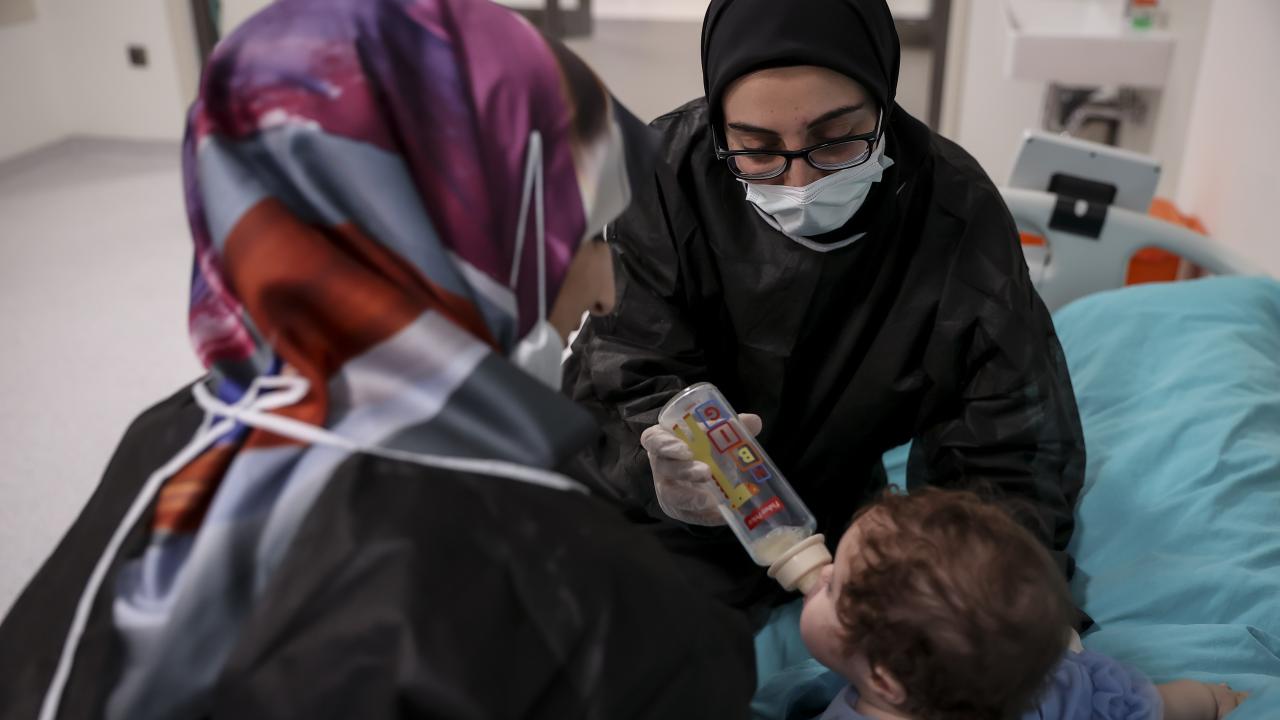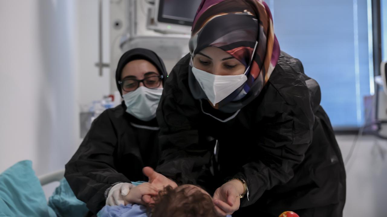 "Kendi evlatları" gibi gördükleri Faslı bebeğe anne şefkatiyle yaklaşan hemşireler, beslenme ve temizlik ihtiyacını karşılıyor, onu ayaklarında sallayarak uyutuyor.