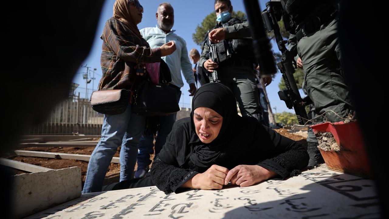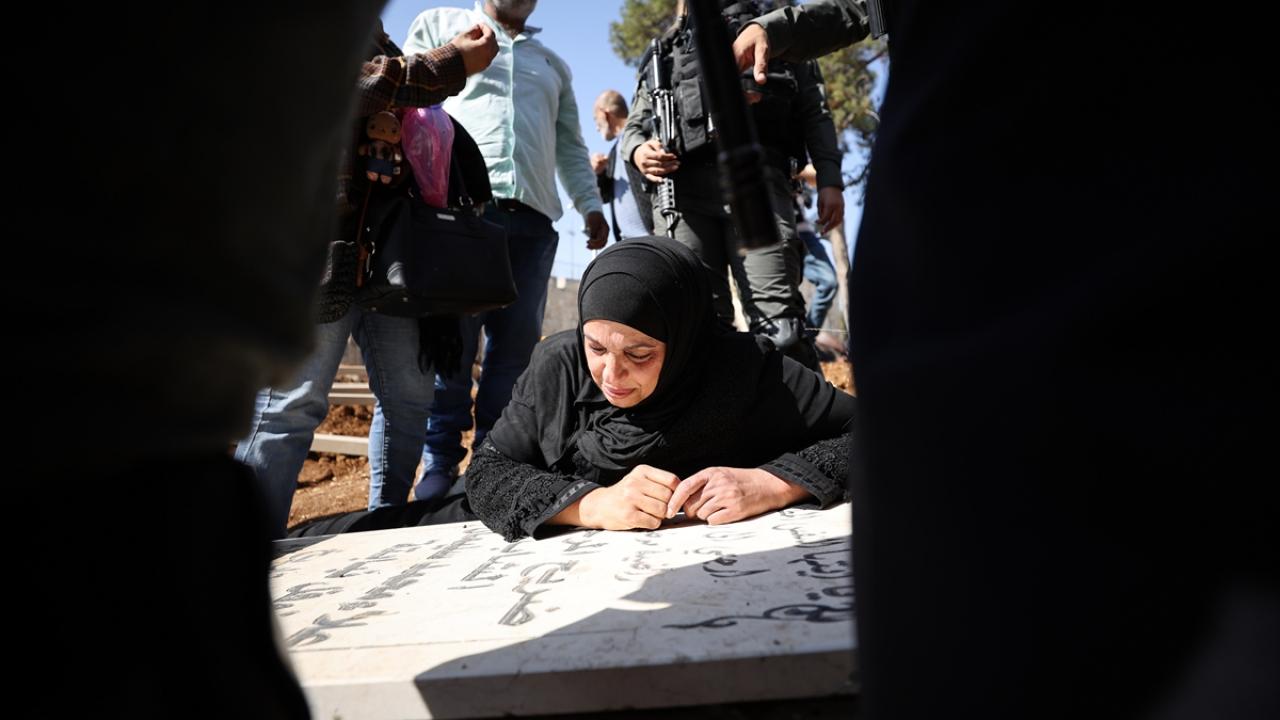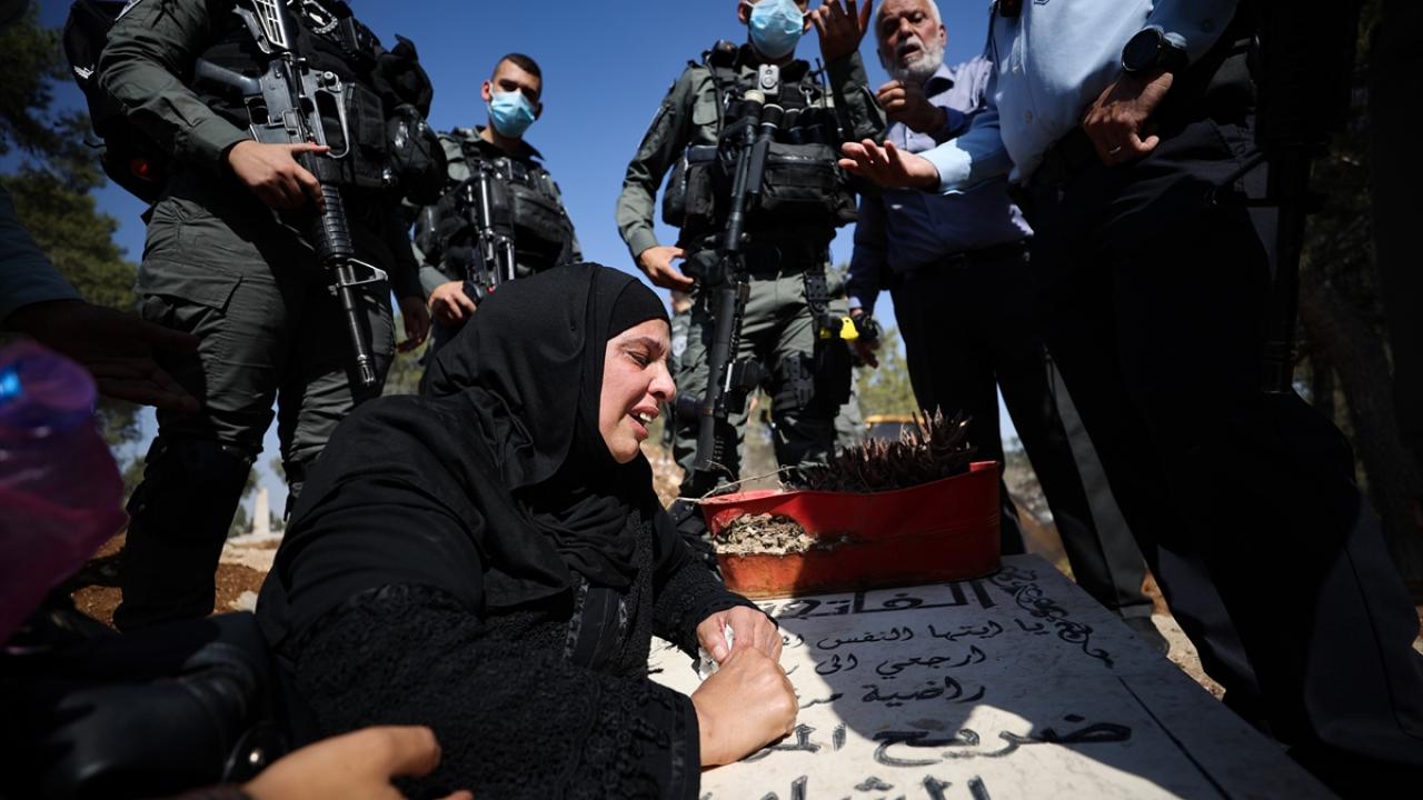 İsrail polisinin zorla oğlunun mezarın başından kaldırmaya çalıştığı Umm Alaa hıçkırıklarla kabire sarılarak, "Beni de buraya, oğlumun yanına gömün." diye feryat etti.
