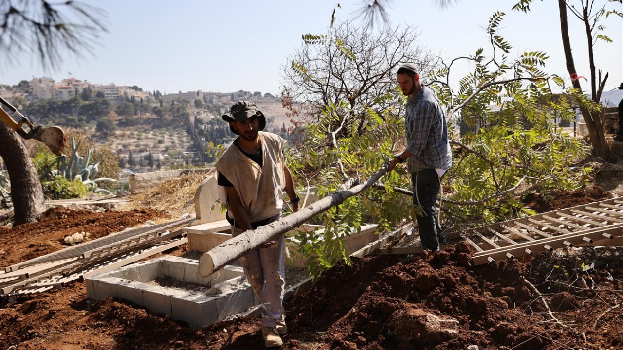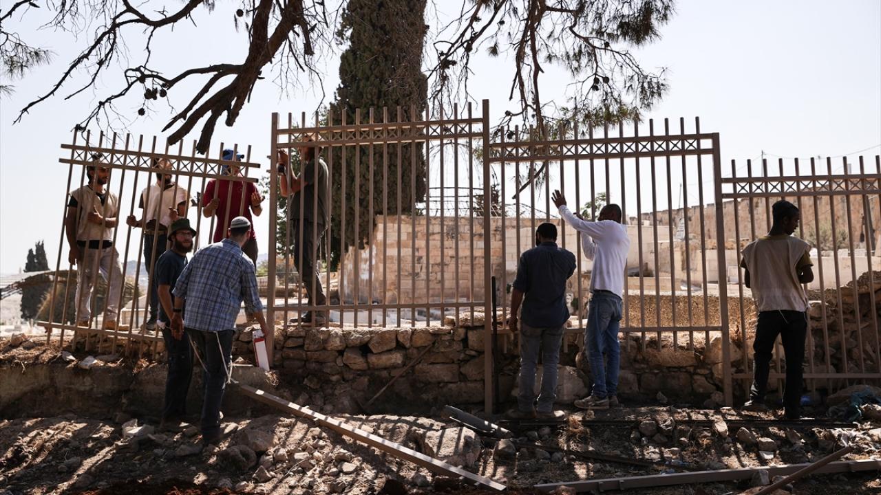 İsrail yönetimine hizmet veren taşeron firmanın çalışanları, İsrail polisi korumasında bir taraftan mezarlığın bir kısmında iş makineleriyle getirilen toprağı düzenlerken, diğer taraftan çalışmanın yapıldığı kısmın etrafını demir korkuluklarla kapattı.