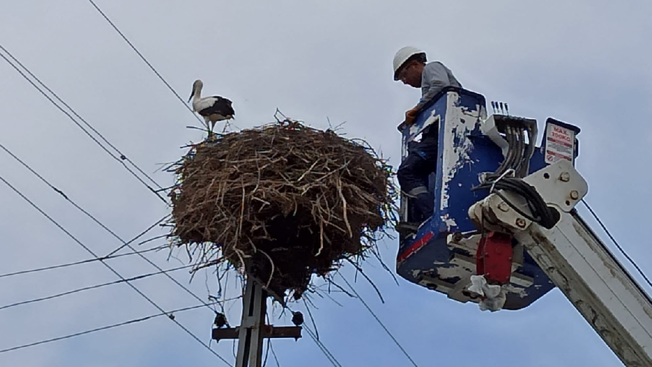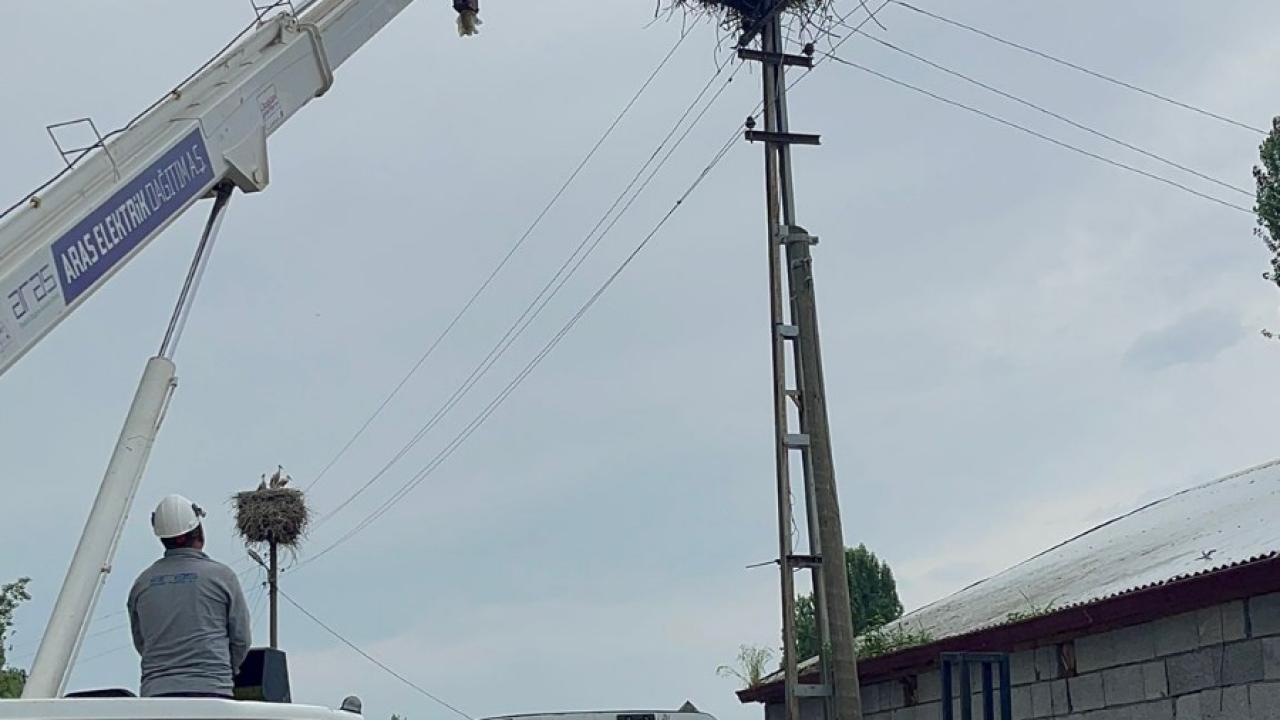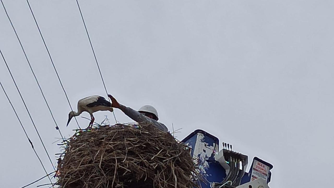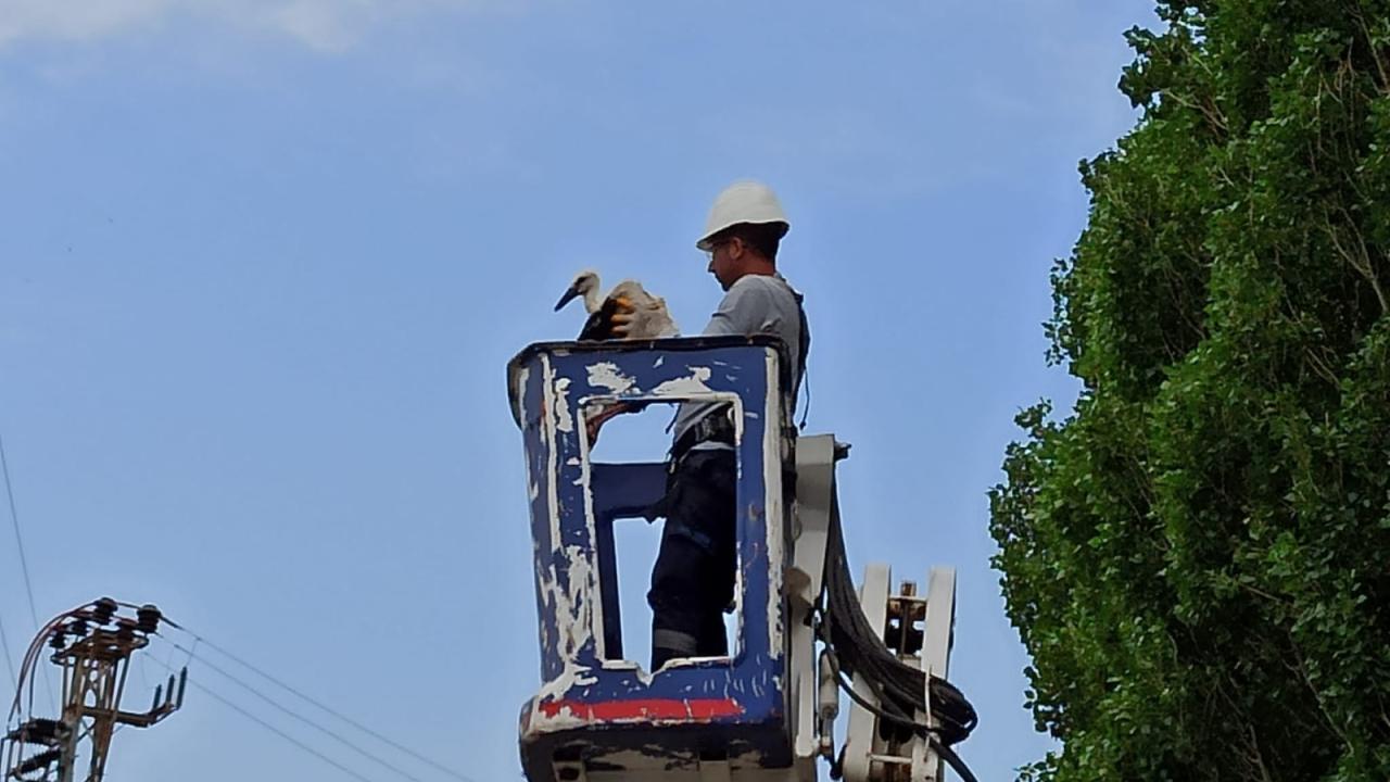 Leyleklerin göç yolu üzerindeki Iğdır`a 47 kilometre uzaklıktaki Ramazankent köyünde yaşayanlar, elektrik direğindeki yavru leyleğin annesinin bir süredir dönmediğini fark edince, elektrik dağıtım şirketinin görevlilerine haber verdi.