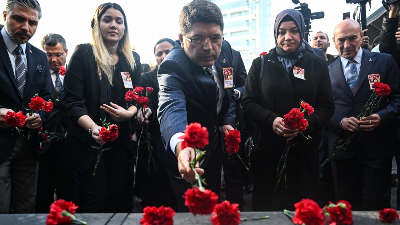 Adalet Bakanı Yılmaz Tunç, İzmir'de 7 yıl önce gerçekleştirilen terör saldırısında şehit edilen polis memuru Fethi Sekin ile mübaşir Musa Can için İzmir Adalet Sarayı'nda düzenlenen anma törenine katıldı.