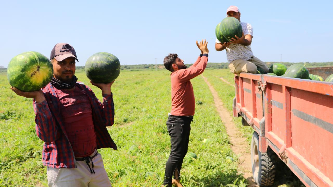 İşçilerden Mehmet Gökkan, “Günlük 40-45 derece sıcakta çalışıyoruz. İşçiler de zorlanıyor, günlük 150 ton karpuz yüklüyorlar. İnşallah 1 hafta sonra hasat iyice hızlanır ve 45-50 gün burada iş olur. Sıcaklık etkiliyor, çok sıcak. Ekmek parası ama çalışmak zorundayız” dedi.