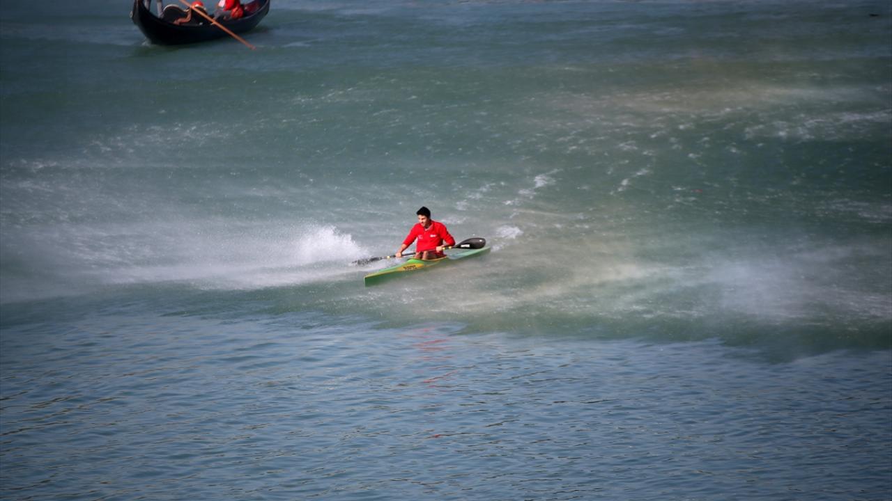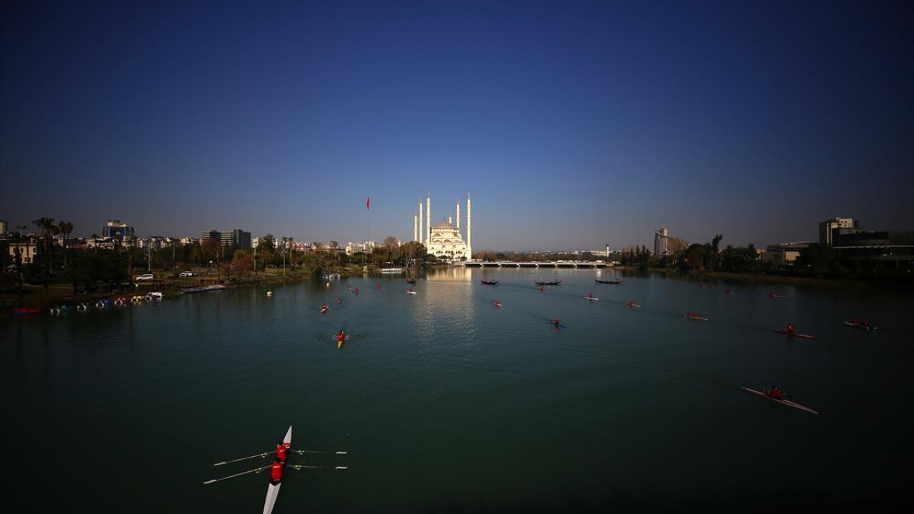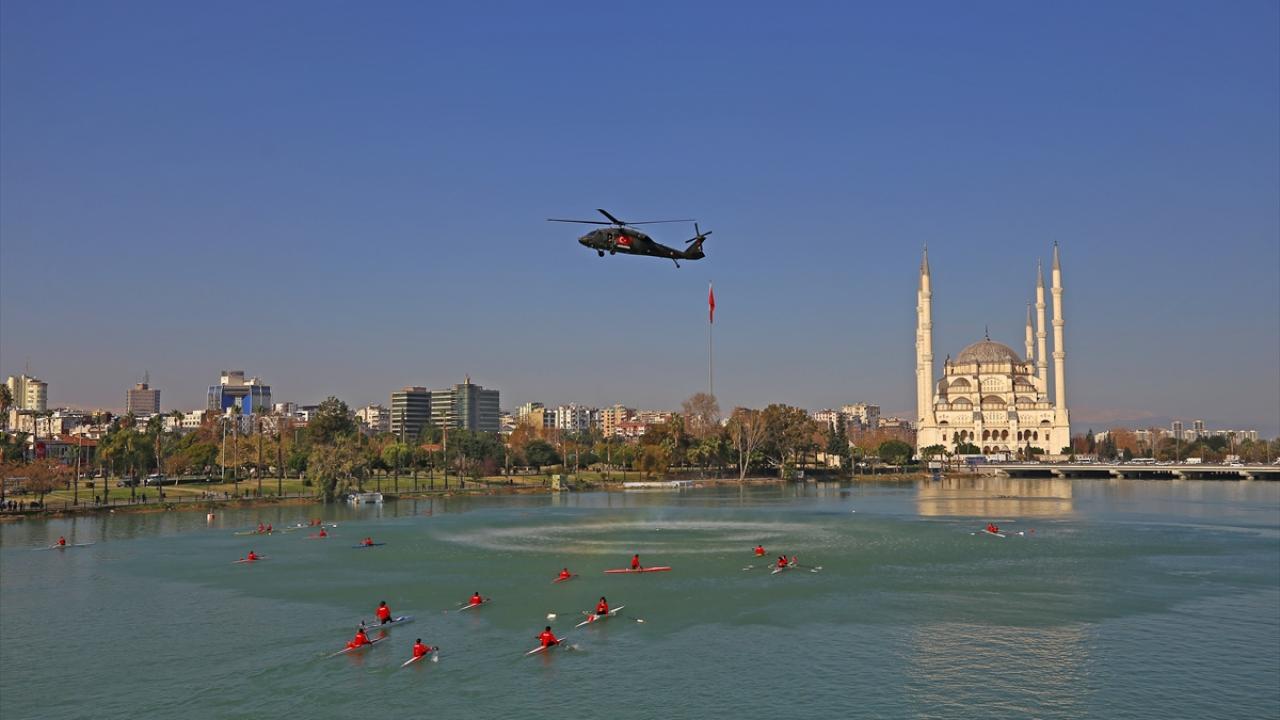 Kano ve kürek sporcuları da Seyhan Nehri`nde gösteri gerçekleştirdi.