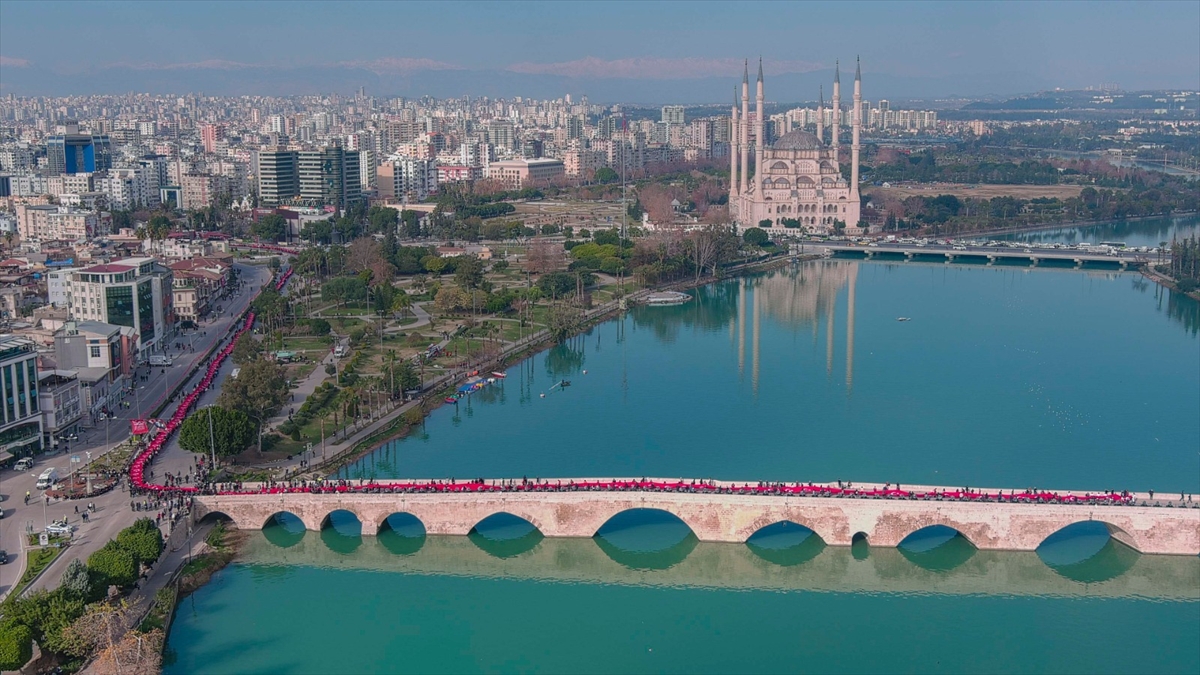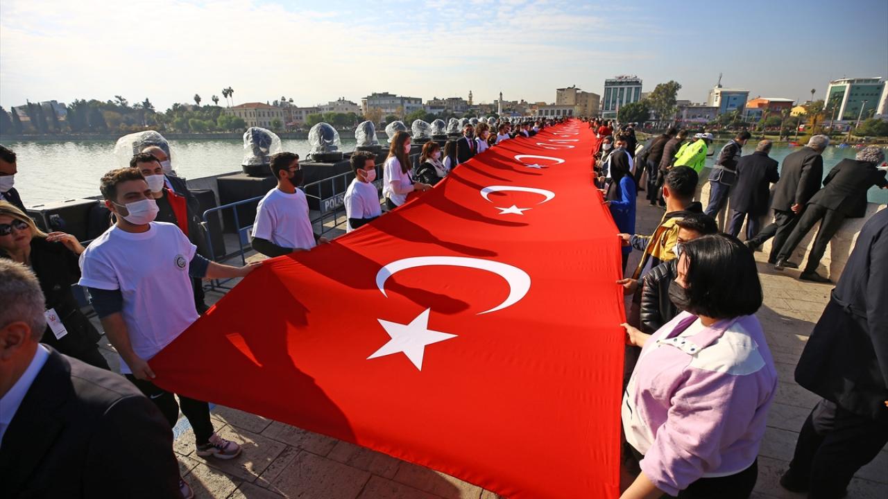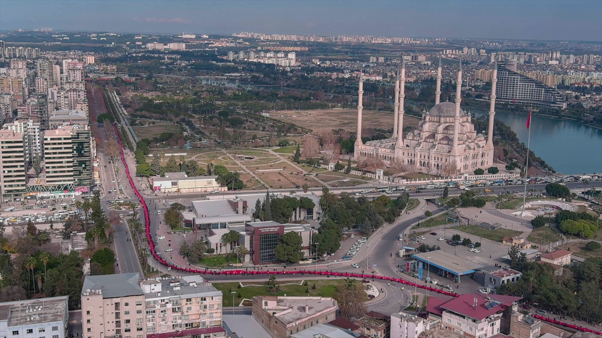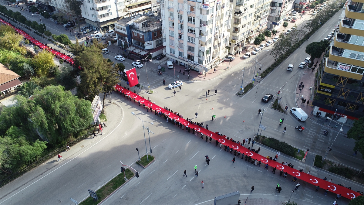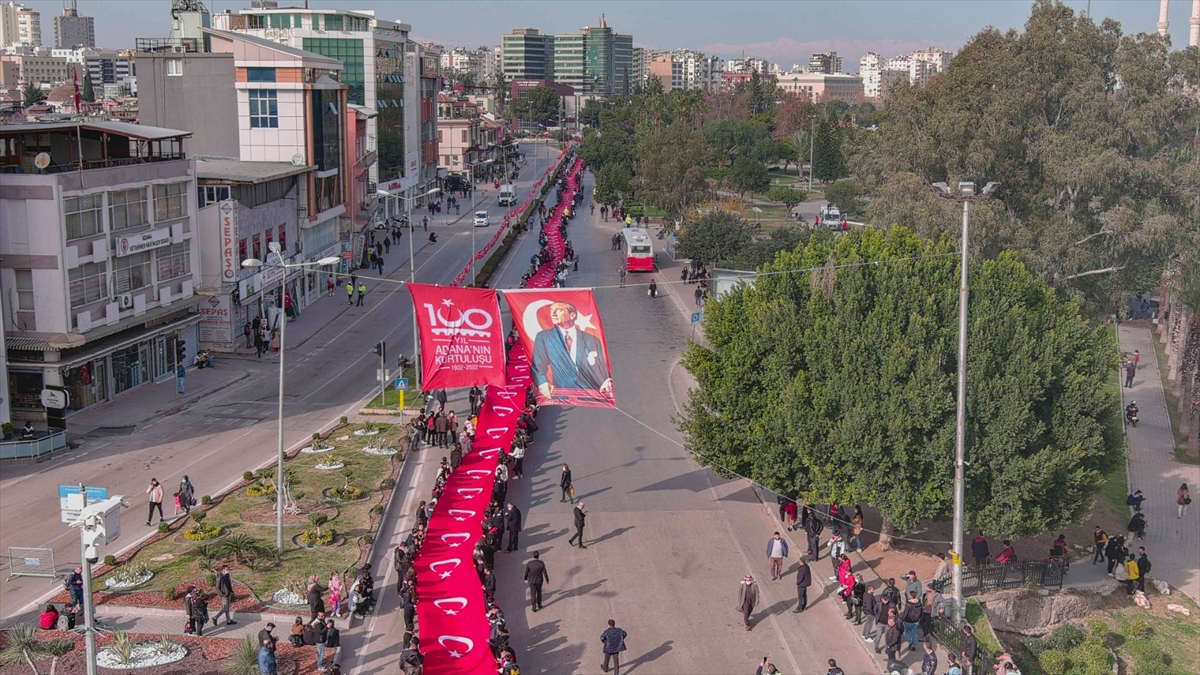 Adana'nın düşman işgalinden kurtuluşunun 100. yıl dönümü kutlamaları kapsamında, 6 bin 500 kişilik ekip, kentin tarihi simgelerinin bulunduğu caddelerde 3 bin 628 metre uzunluğundaki Türk bayrağıyla yürüdü.