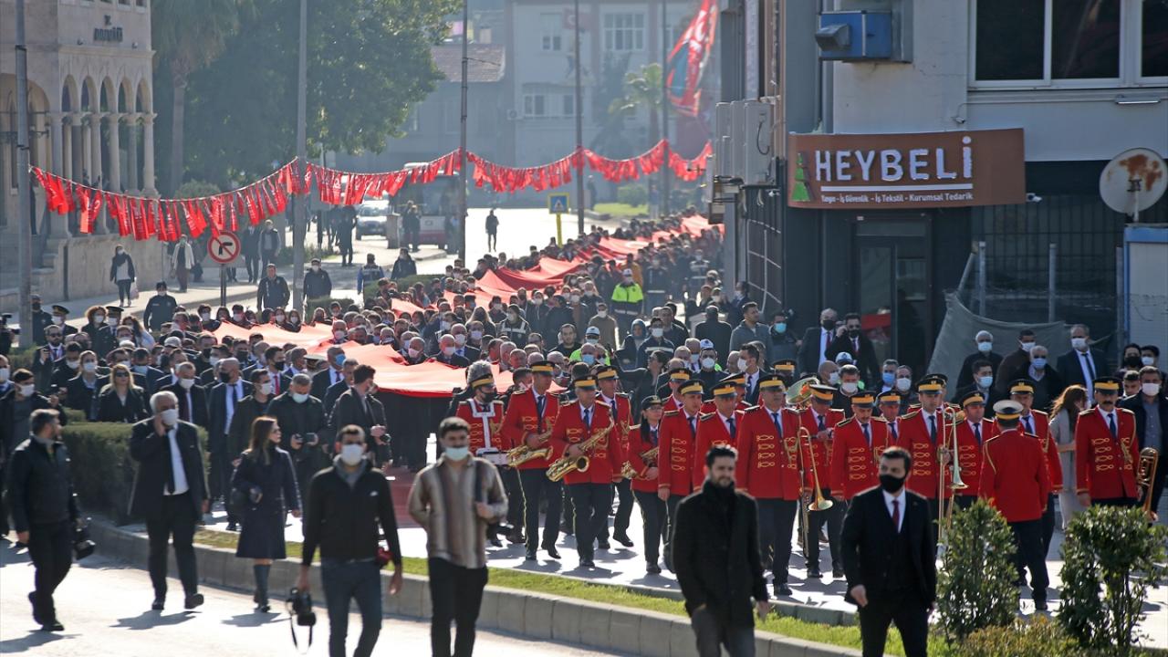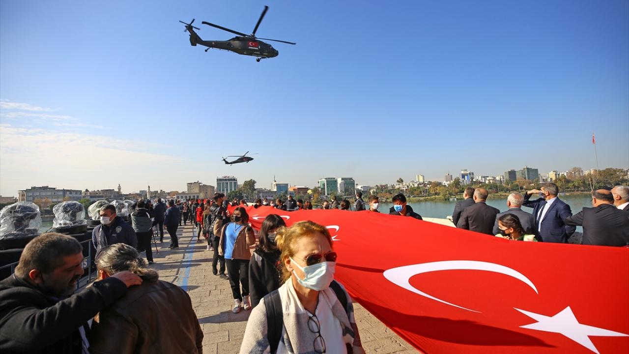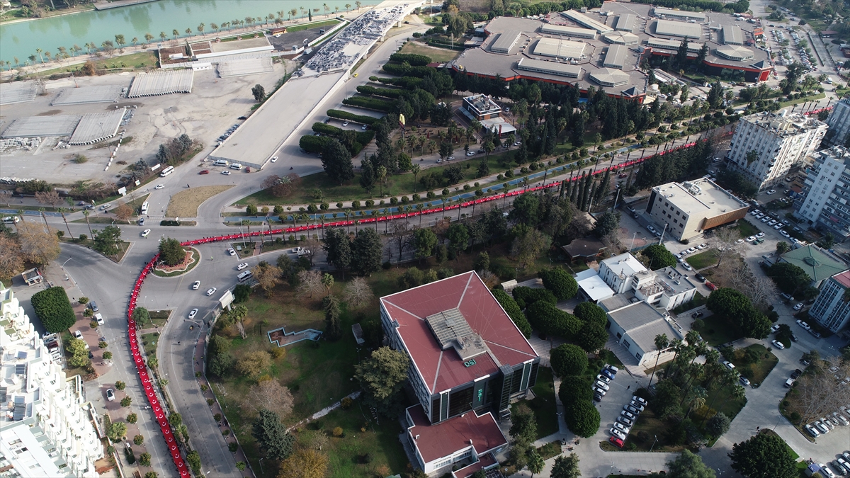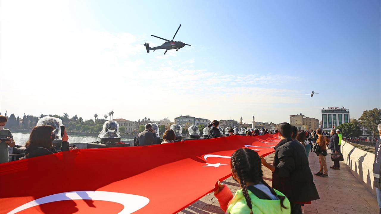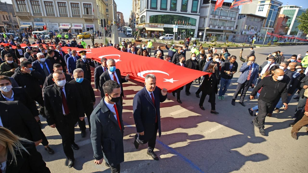 Adana'nın düşman işgalinden kurtuluşunun 100. yıl dönümü kutlamaları kapsamında, 6 bin 500 kişilik ekip, kentin tarihi simgelerinin bulunduğu caddelerde 3 bin 628 metre uzunluğundaki Türk bayrağıyla yürüdü.