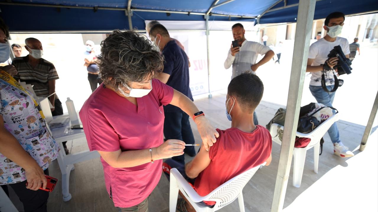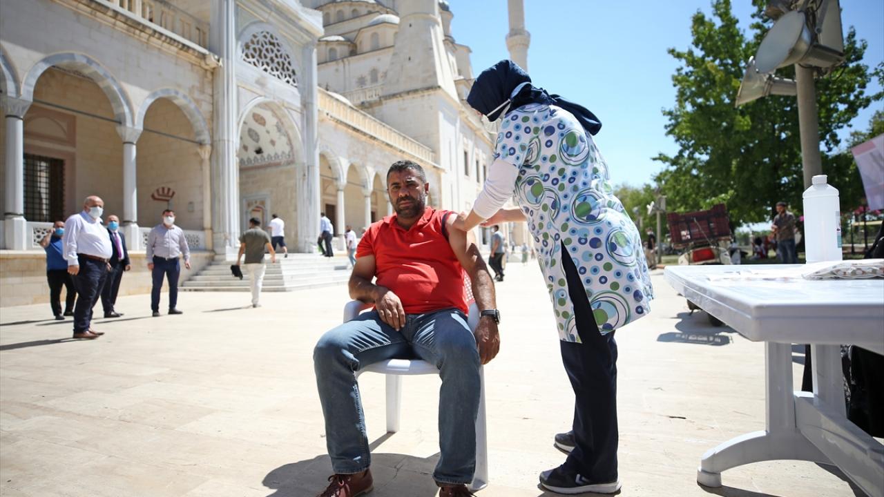 Sağlık ekipleri, namaz öncesi ve sonrasında vatandaşlara Covid-19 aşısı yaptı.