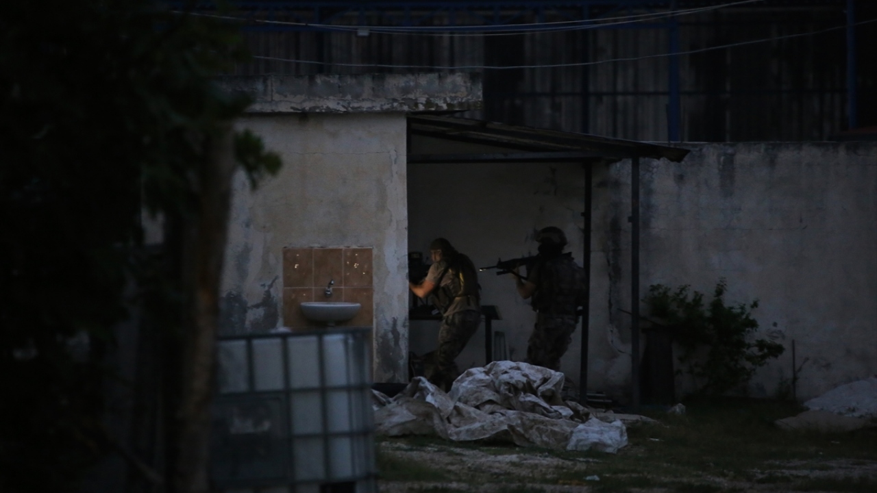 Ardından çiftlik içerisindeki bir eve ve depoya çevre güvenliğini alarak uzun namlulu silahlarla giriş yapan ekipler, buralarda arama yaptı.