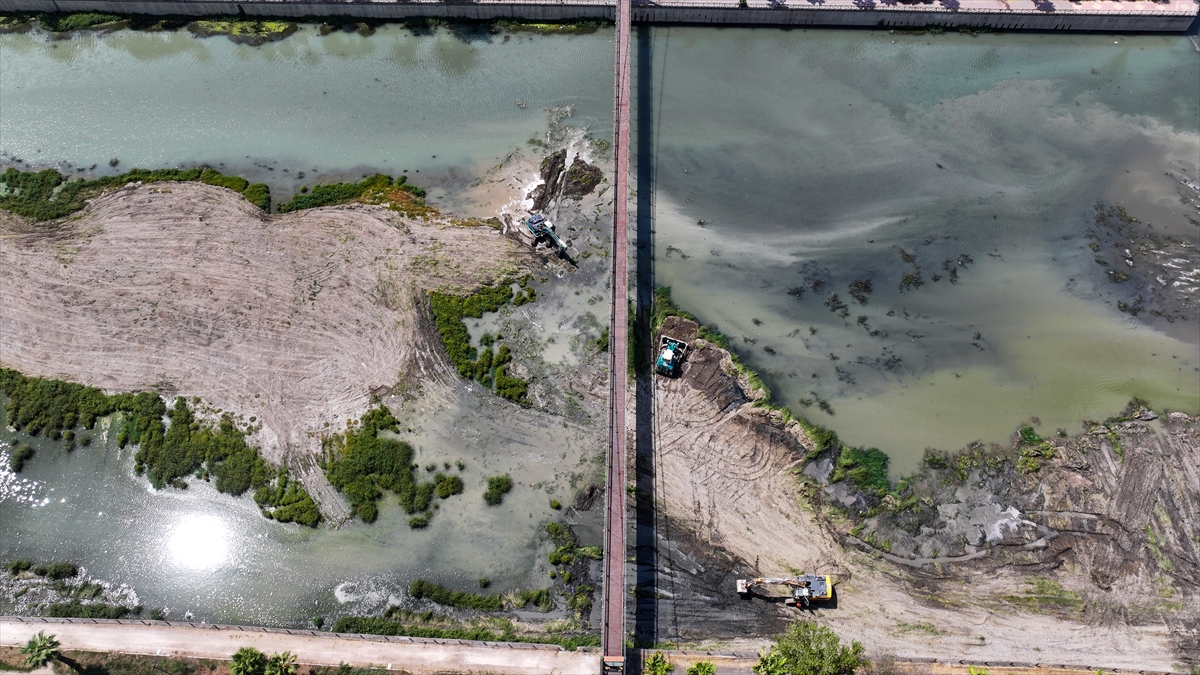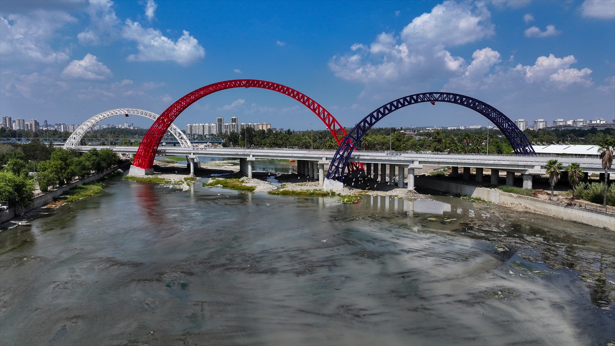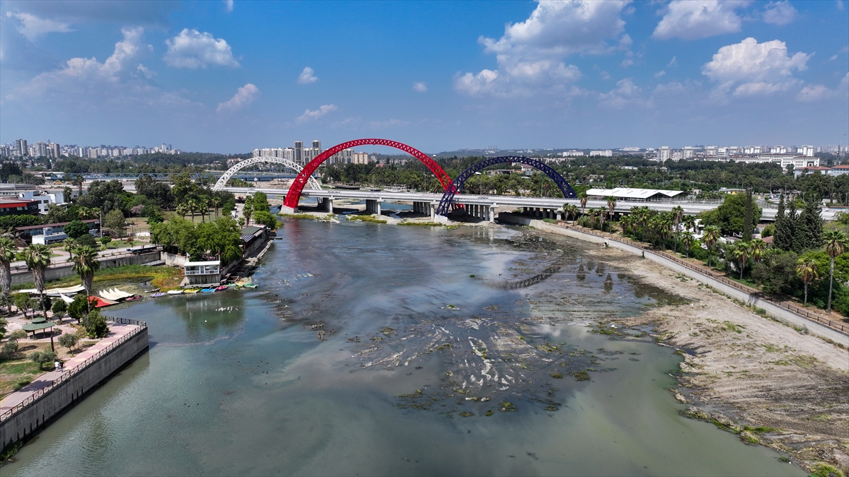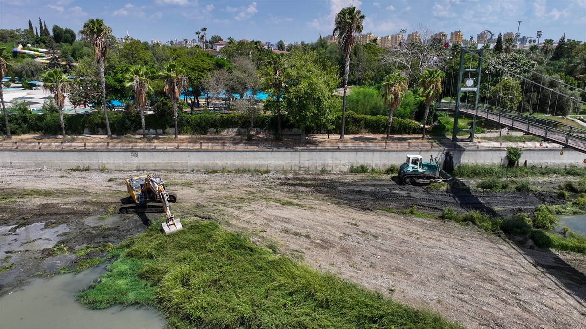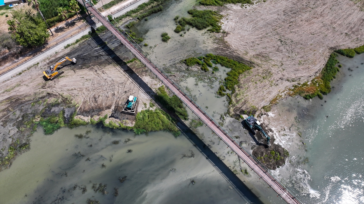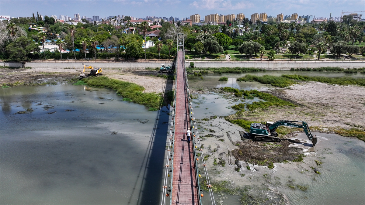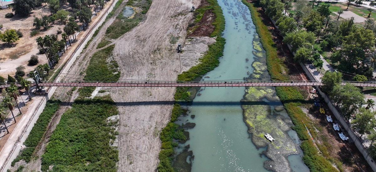 Seyhan Nehri üzerindeki köprü çalışması sebebiyle su seviyesinin düşürüldüğü nehirde oluşan kirliliği ortadan kaldırmak için 6 iş makinesiyle çalışma yapılıyor.