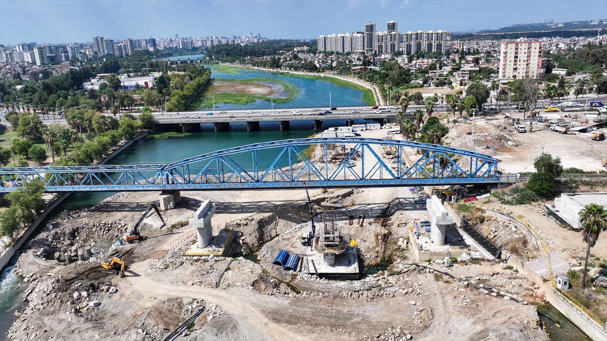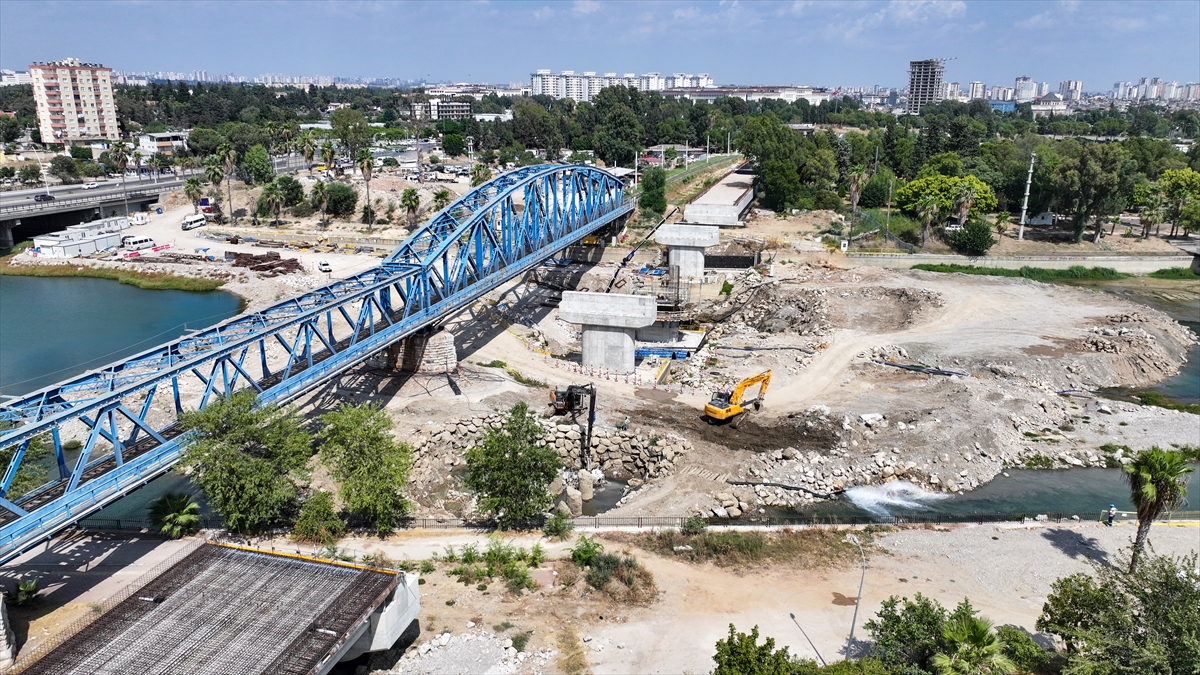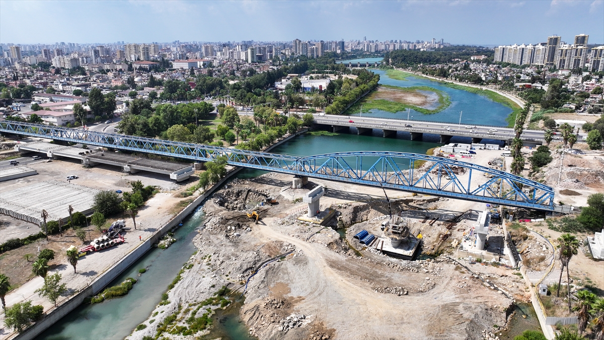 Kentin Seyhan ve Yüreğir ilçelerini ayıran Seyhan Nehri`ndeki çalışmalar dronla görüntülendi.